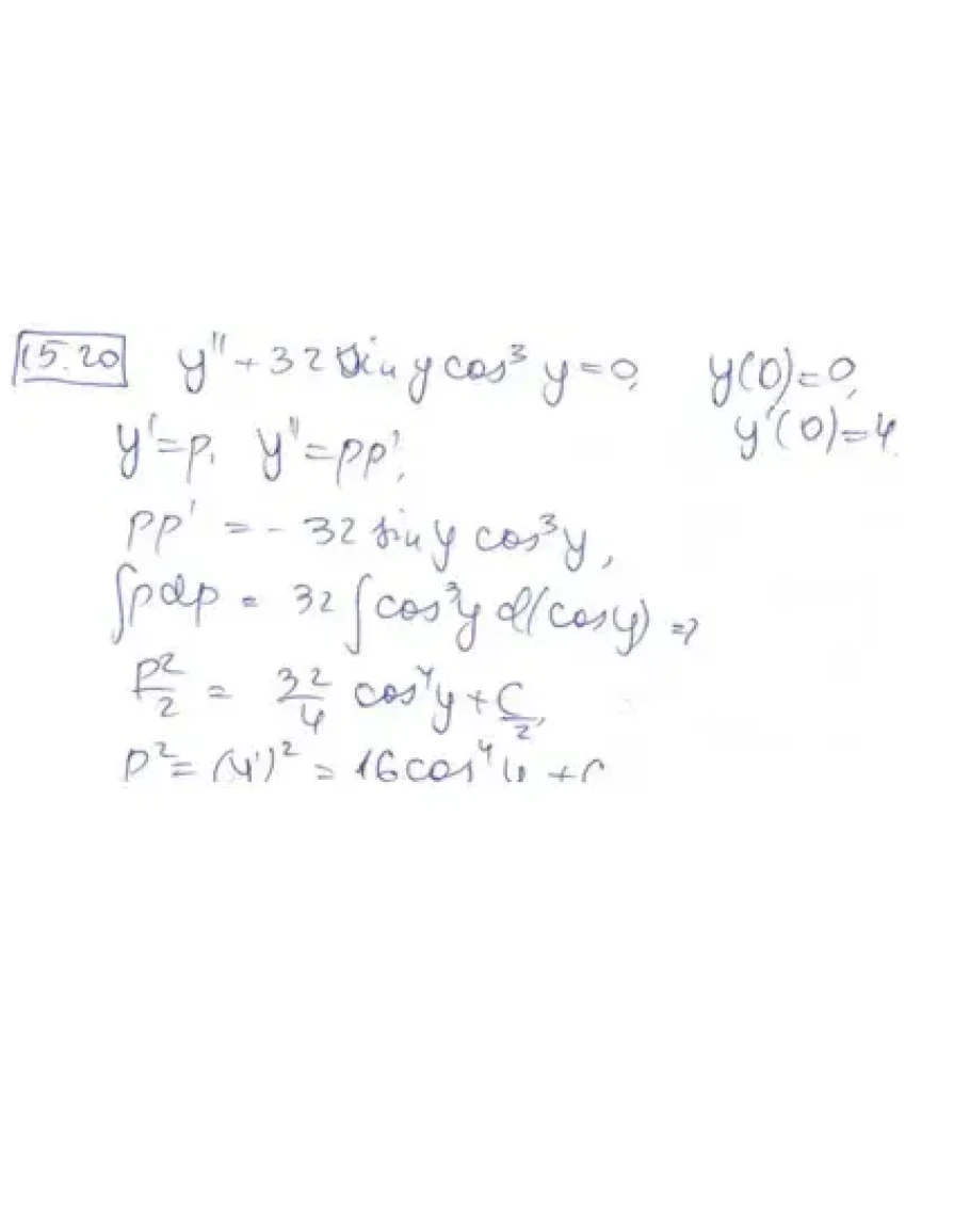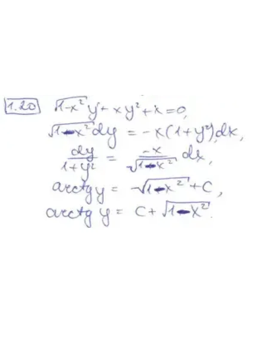 Розв'язана розрахункова робота з диференціальних рівнянь. НУЛП. В першому завданні потрібно знайти загальний інтеграл рівняння, в 15 - розв'язати задачу Коші. Варіант 20.