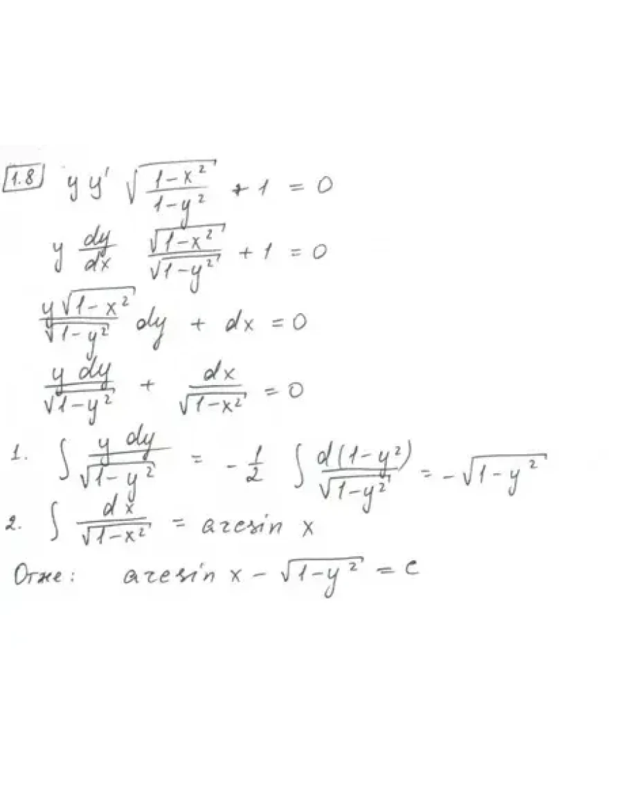 Розв'язана розрахункова робота з диференціальних рівнянь. НУЛП. В першому завданні потрібно знайти загальний інтеграл рівняння, в 15 - розв'язати задачу Коші. Варіант 8.
