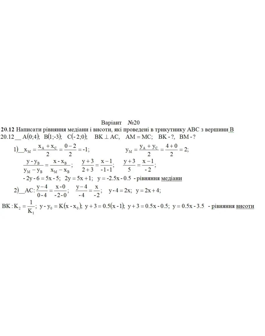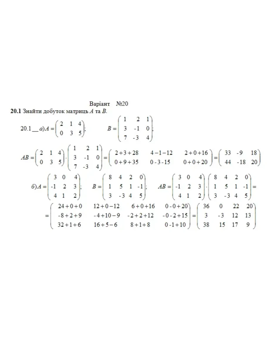 Розрахункова з лнйно алгебри (1-24 завдання) Вар. 20