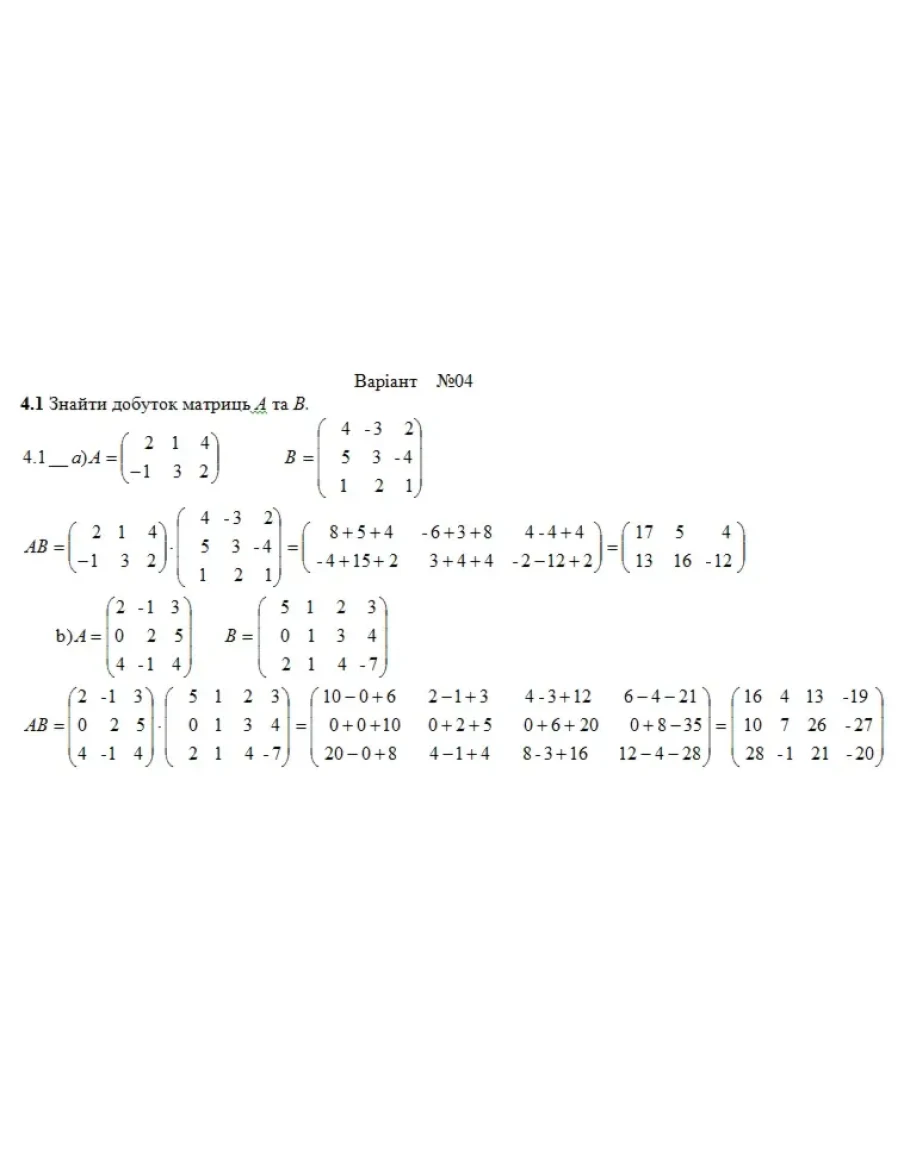 Розрахункова з лнйно алгебри (1-24 завдання) Вар. 4