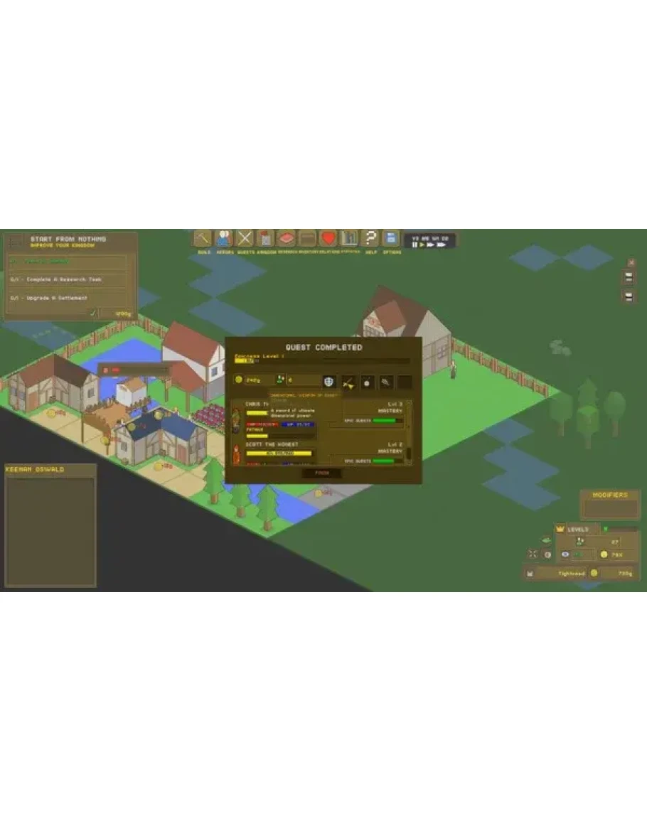 Start with just a single plot of land and choose from a plethora of Heroes to send on quests in order to steadily grow the fame of your Kingdom. As popularity increases you'll attract settlers from the surrounding towns to spend money on shops and services you provide.