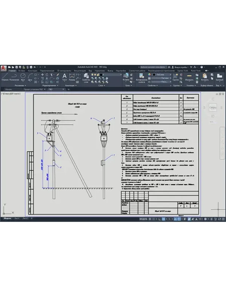 Состав проекта установки ПКУ на опорах: