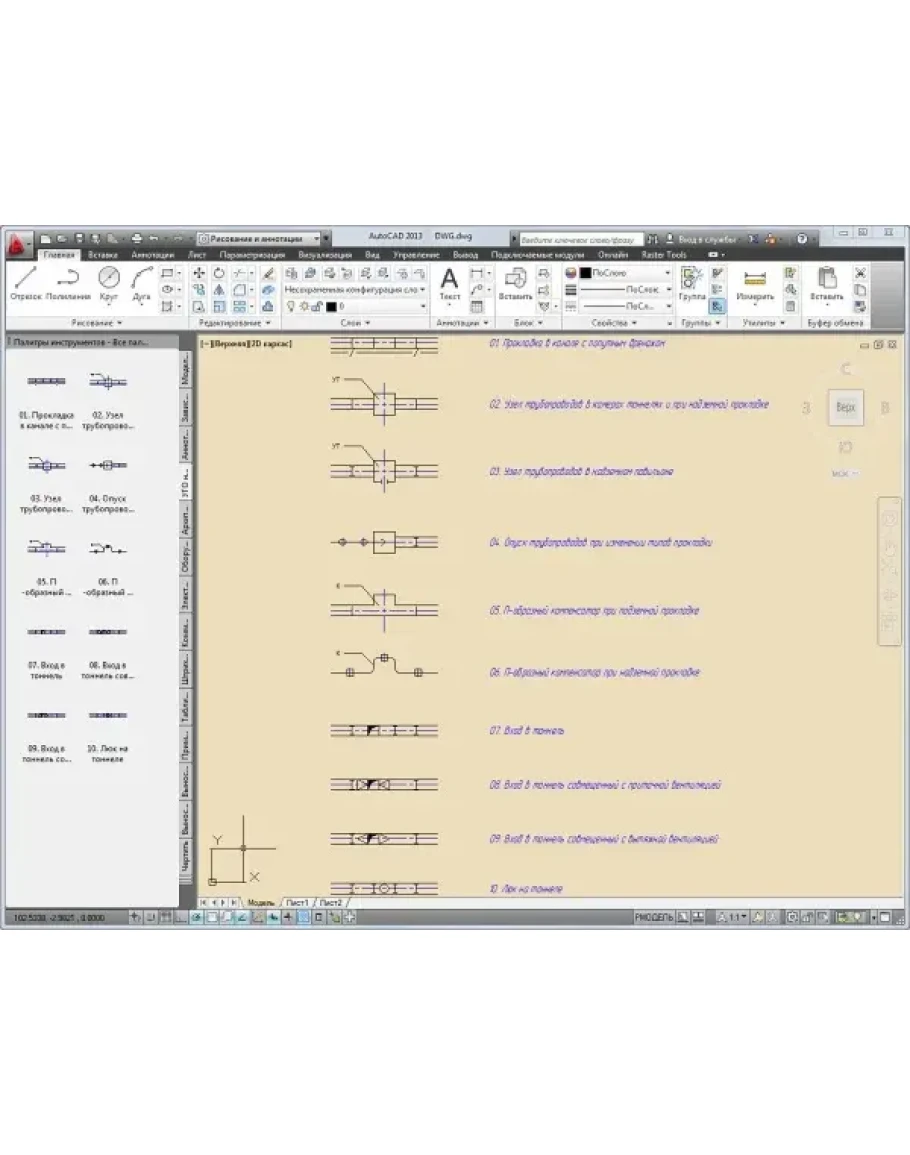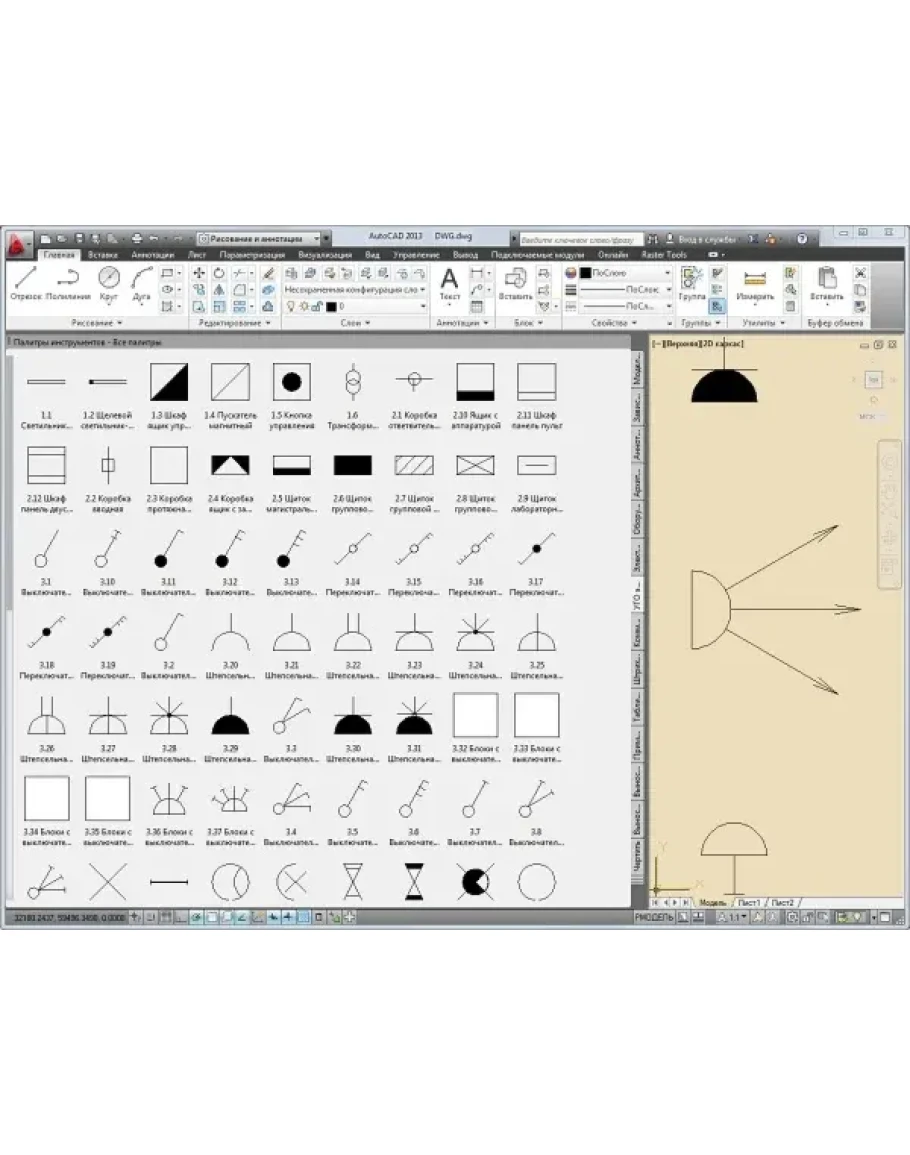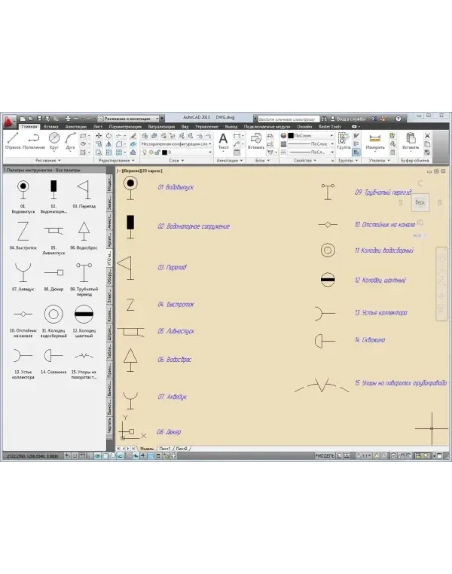 Элементы для удобства собраны в инструментальную палитру блоков AutoCAD 2010 .