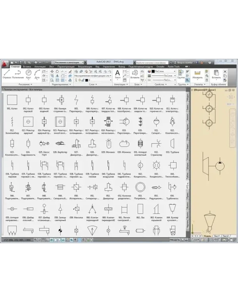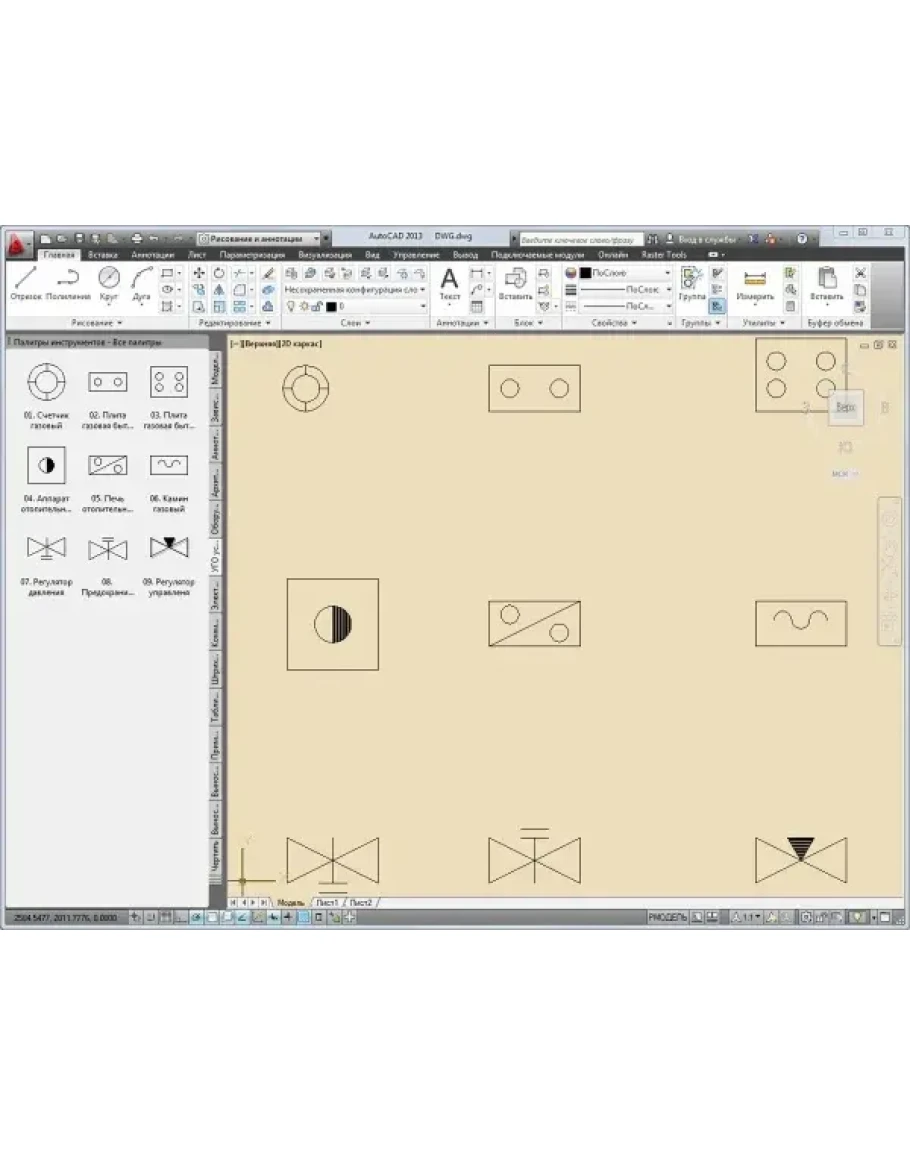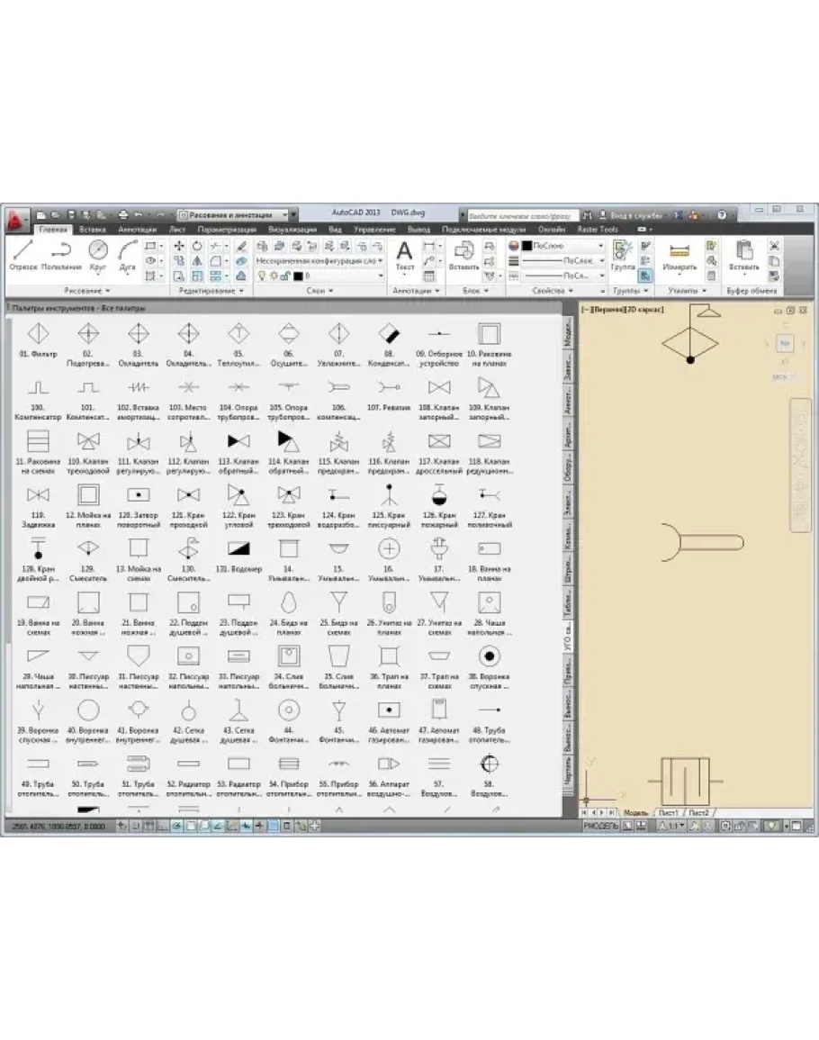 Элементы для удобства собраны в инструментальную палитру блоков AutoCAD 2010 .
