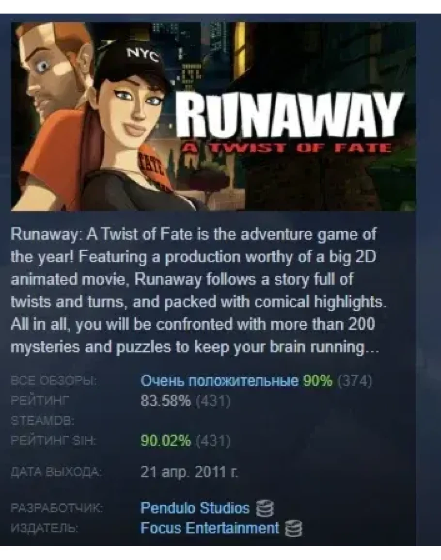Runaway: A Twist of Fate АВТОДОСТАВКА STEAM РОССИЯ