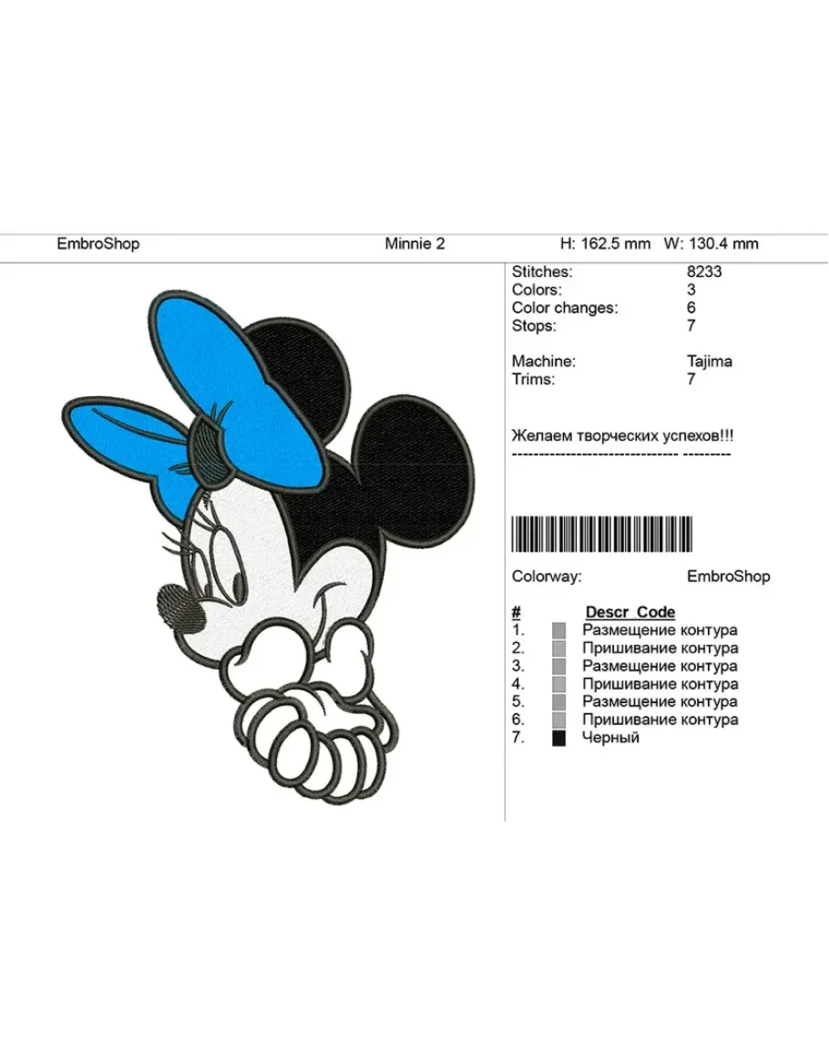 Детская вышивка "Minnie 2" с аппликацией.