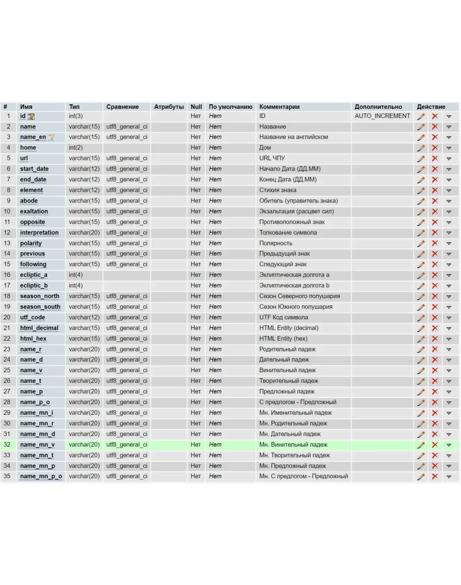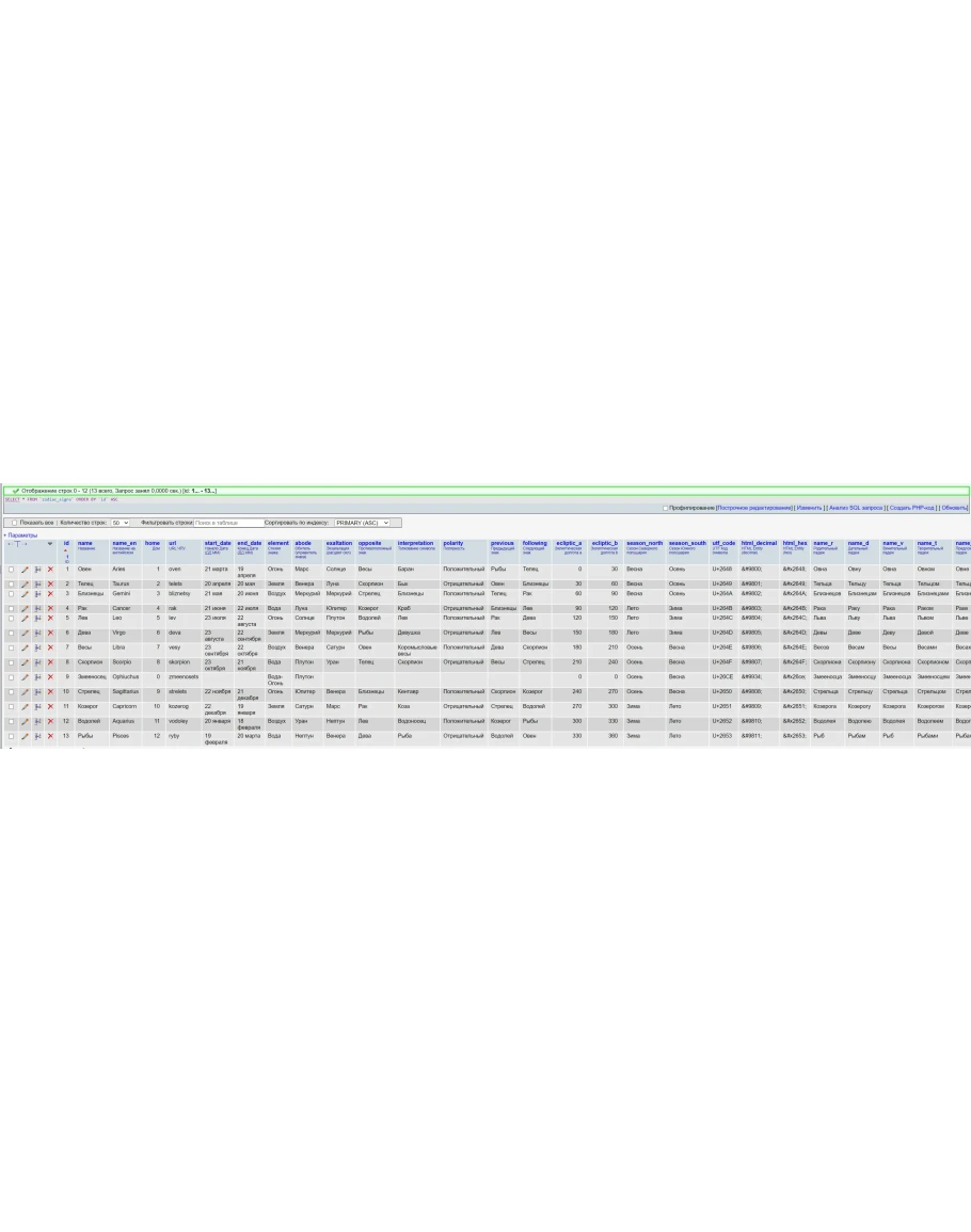 MySQL база данных знаков зодиака со склонениями (Дамп)