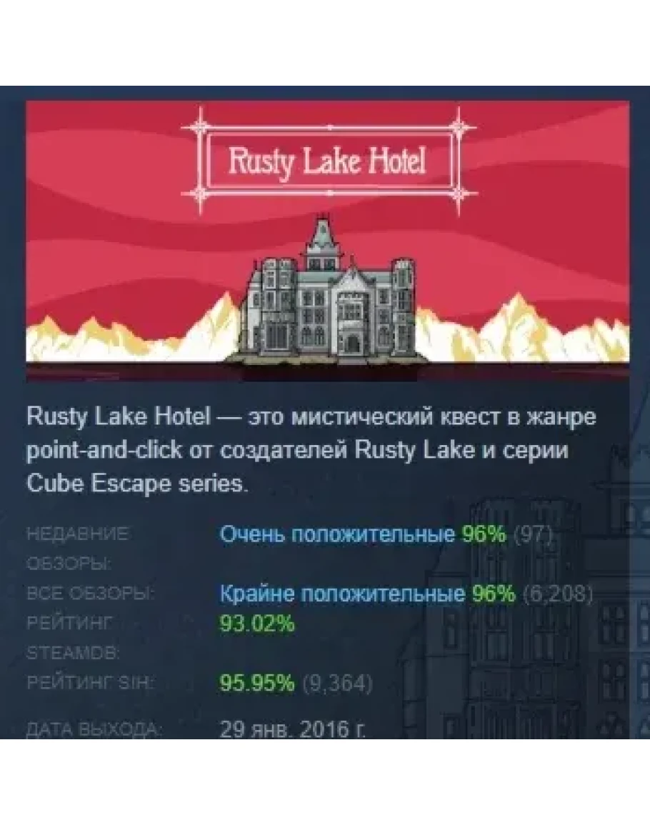 Rusty Lake Hotel АВТОДОСТАВКА STEAM РОССИЯ