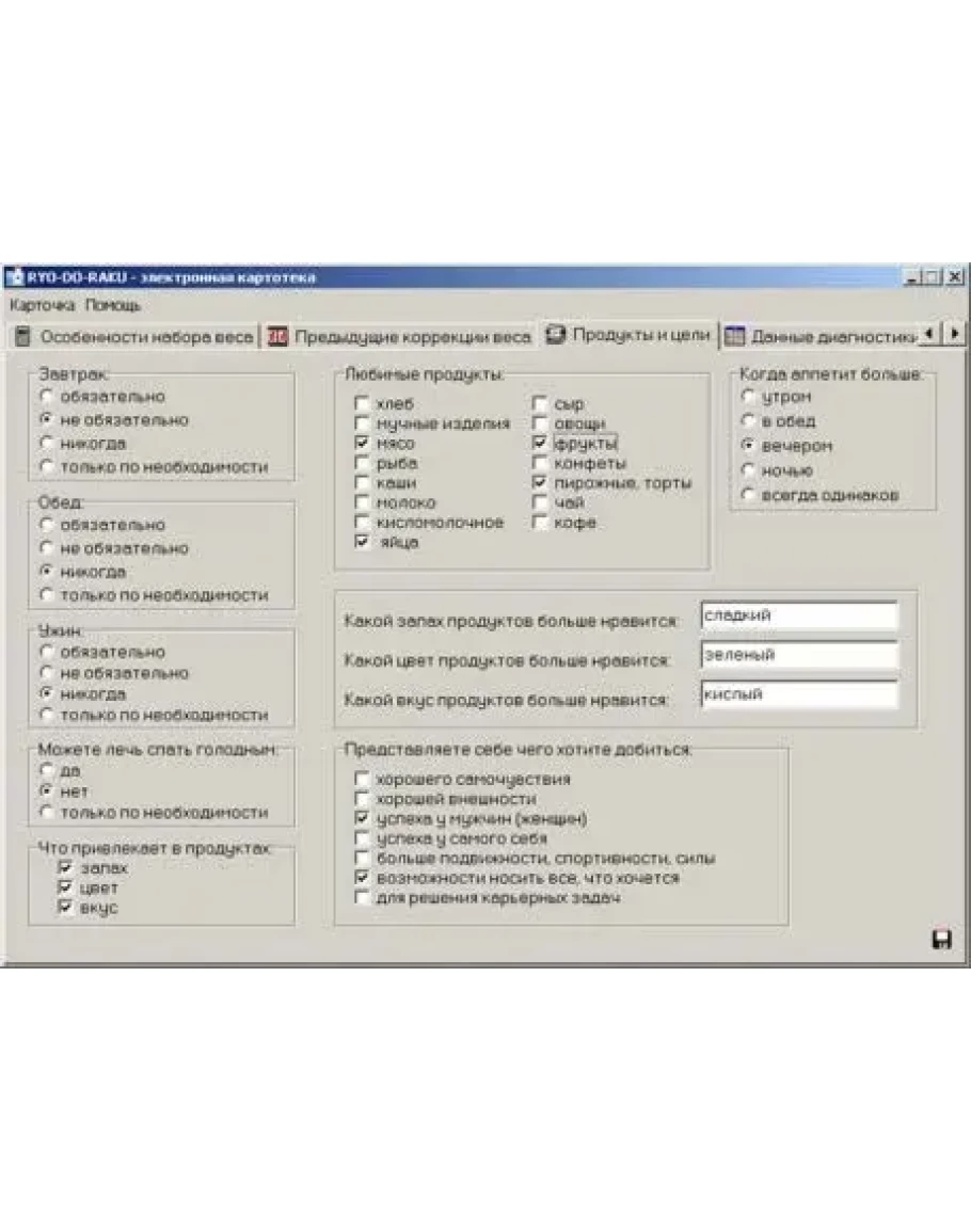 Электронная картотека RYO-DO-RAKU облегчит жизнь врачу-диетологу - специалисту в области лечебного похудания. Программа дает возможность ведения картотеки пациентов, которая содержит все необходимые данные для работы врача - особенности набора веса, предыдущие коррекции веса, данные диагностики RYO-DO-RAKU, анамнез жизни, динамику потери веса в процессе лечения, рецепт лечения. Программа поддерживает неограниченное количество карточек пациентов. Электронная картотека RYO-DO-RAKU станет незаменимым помощником современного медицинского специалиста.