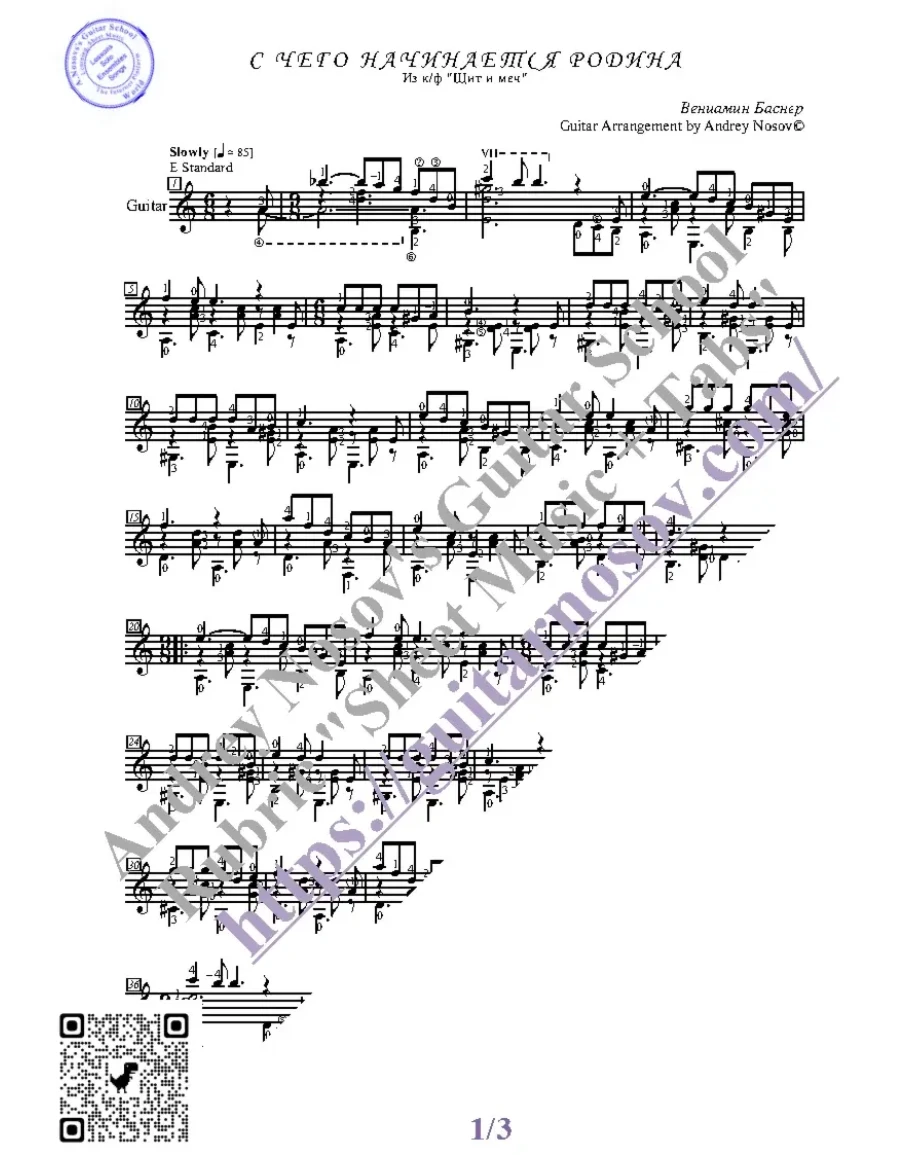 Кликните "Подробнее" для получения дополнительной информацииВашему вниманию предлагается композиция "С чего начинается Родина (В.Баснер)", предназначенная для исполнения на 6-ти струнной гитаре СОЛО. Запись выполнена нотами, сопровождена подробнейшей аппликатурой и продублирована табулатурой.