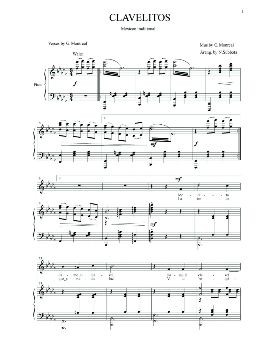 Clavelitos - это песня, написанная испанским Genaro Monreal, с текстом Федерико Галиндо в 1949 году. (Не путать с одним и тем же названием, но составленным Quinito Valverde).