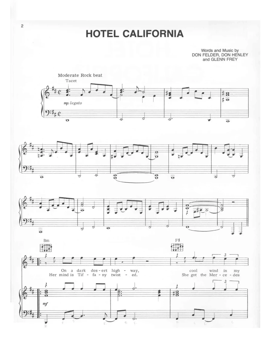 "Отель Калифорния"муз. и сл. Д.Филдер, Д.Хенлей,Г.Фрей