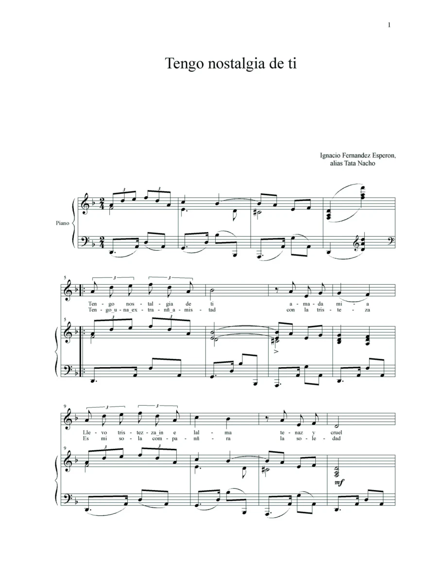 "Я скучаю по тебе" Музыка и слова : Игнасио Фернандес-Эсперан он же Тата Начо
