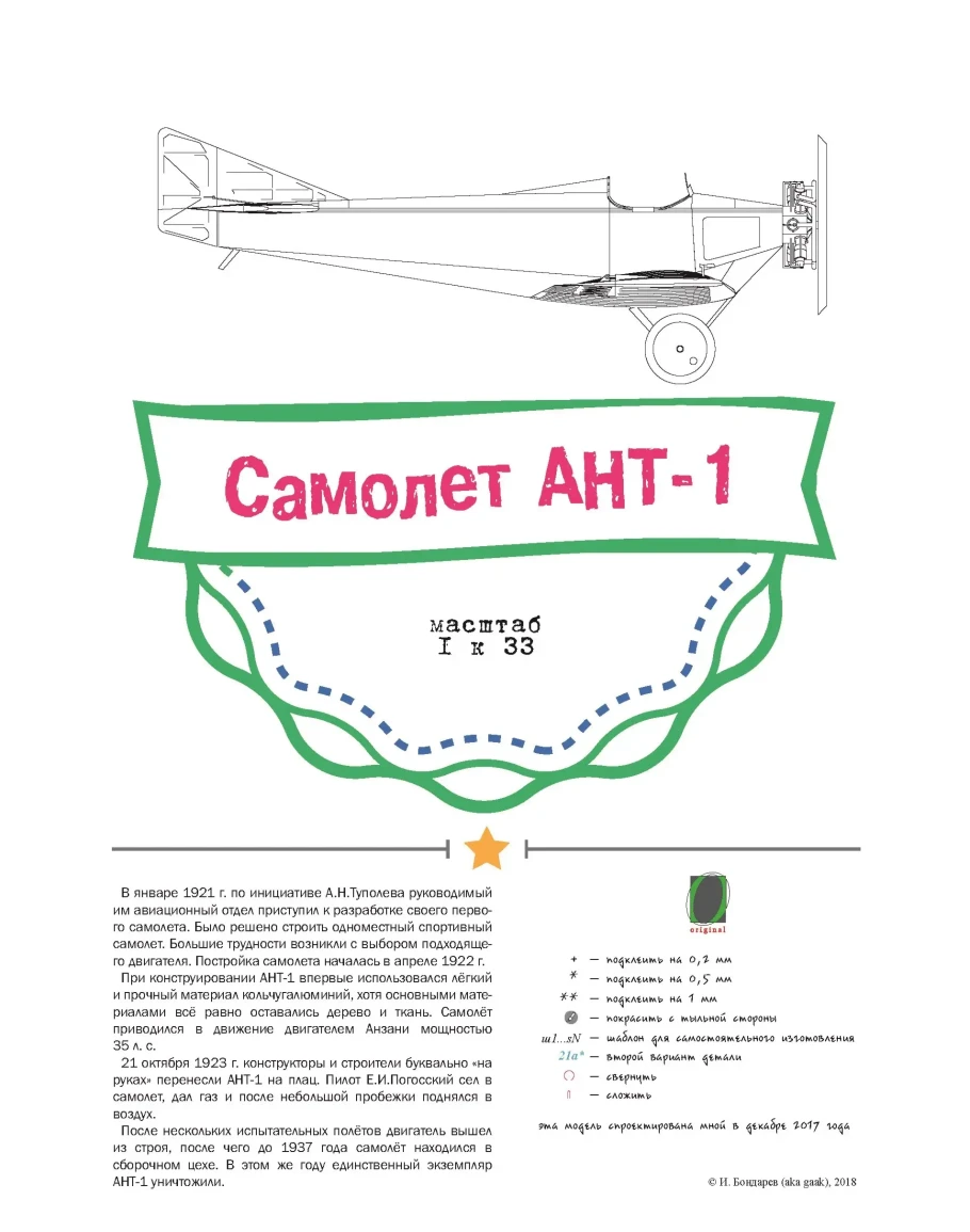 Самолет АНТ-1 (бумажная модель в масштабе 1/33)