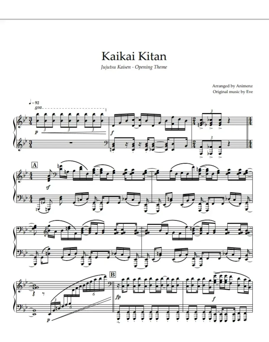 Погрузитесь в динамичную и эмоциональную атмосферу открытия аниме «Jujutsu Kaisen» с потрясающей фортепианной интерпретацией композиции «Kaikai Kitan» в исполнении Animenz — одного из самых известных и талантливых пианистов в мире аниме-каверов. Его виртуозное исполнение раскрывает всю энергетику и драматизм оригинальной песни Eve, сочетая техническую сложность с глубокой эмоциональностью. Этот кавер идеально подходит для пианистов среднего и продвинутого уровней, желающих развить технику игры и погрузиться в мир современной аниме-музыки.