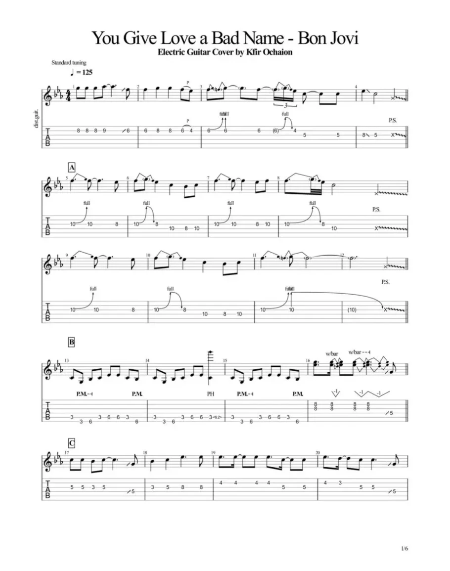 Кфир виртуозно интерпретирует эту культовую композицию, используя свою неповторимую технику и стиль, что делает этот трек идеальным для музыкантов всех уровней. Независимо от того, являетесь ли вы новичком или опытным гитаристом, табулатуры и ноты помогут вам легко освоить "You Give Love a Bad Name" и впечатлить своих друзей своим мастерством.