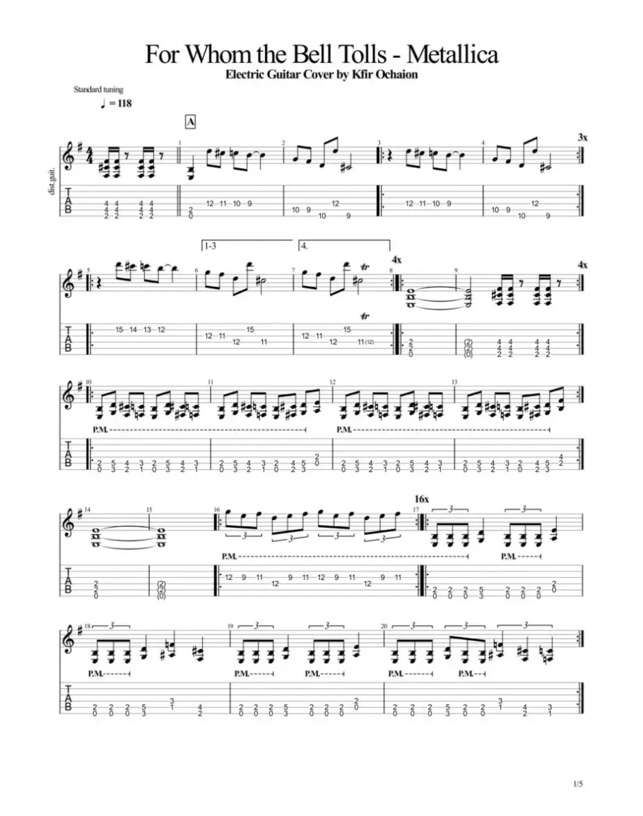 • Табы Kfir Ochaion - Metallica - For Whom the Bell Tolls