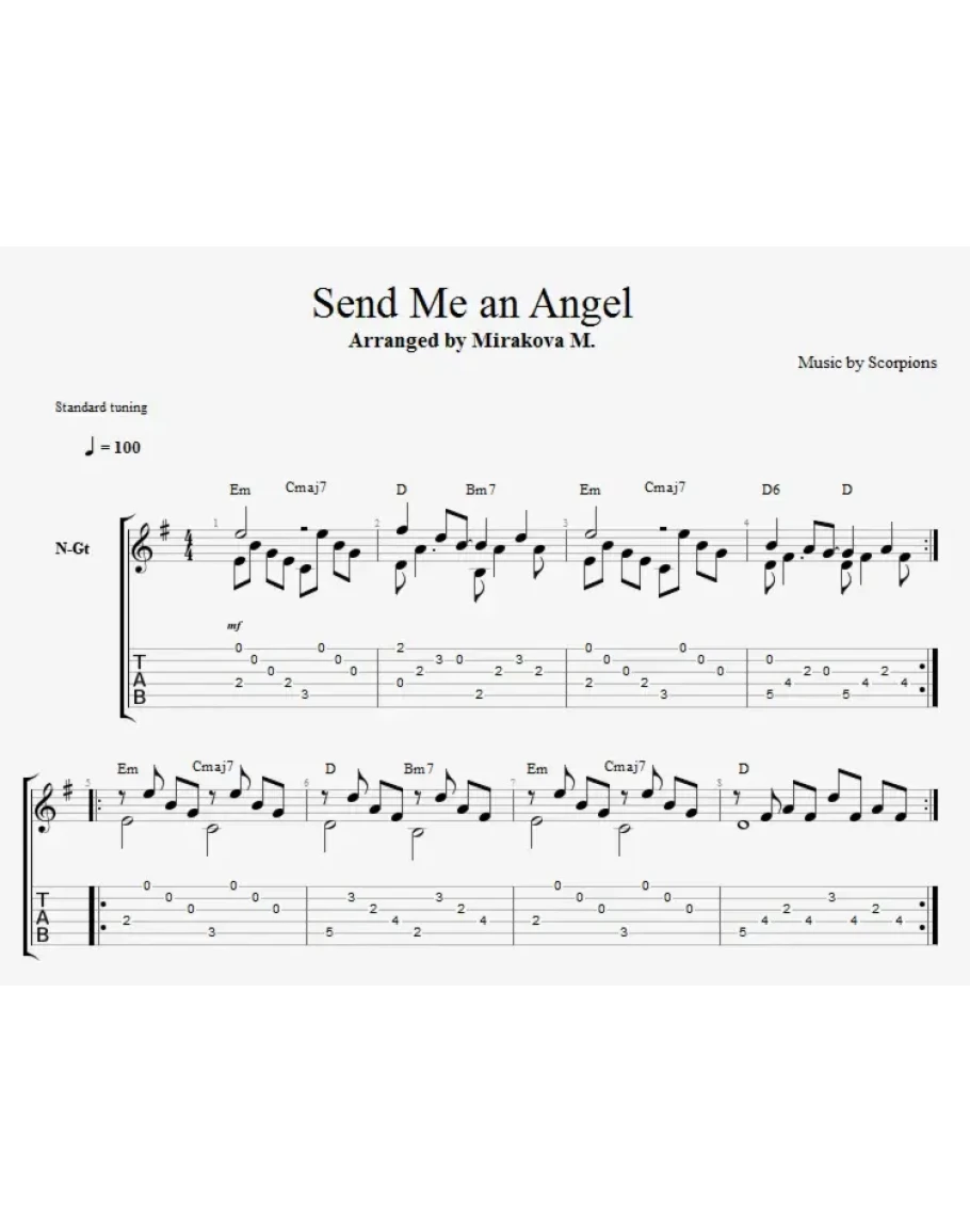 Авторская аранжировка для шестиструнной гитары от Марины Мираковой на композицию Scorpions "Send Me an Angel"