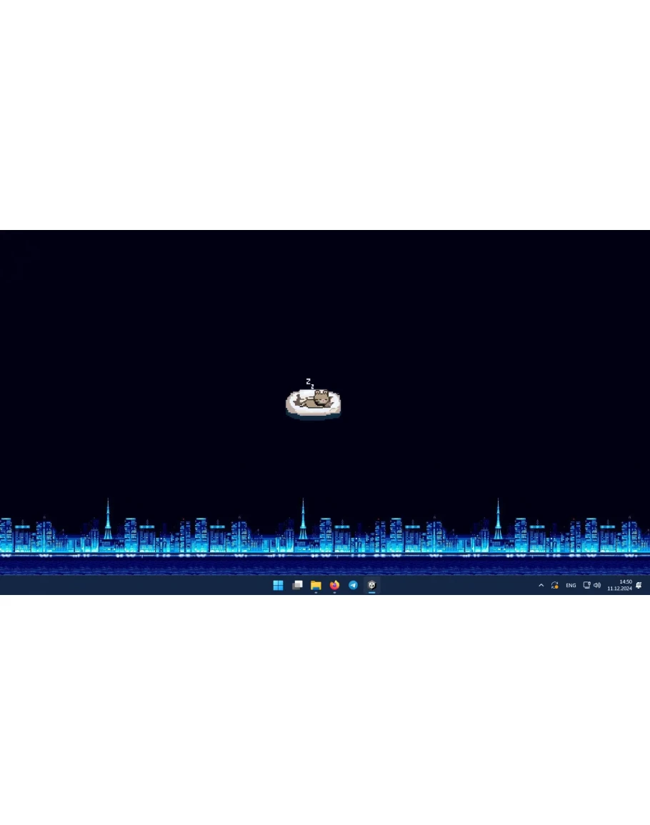 Милый кот на вашем рабочем столе. Он будет мурлыкать, когда вы устали. Он будет охотиться за курсором, когда вы работаете. Он будет спать, пока вы играете.