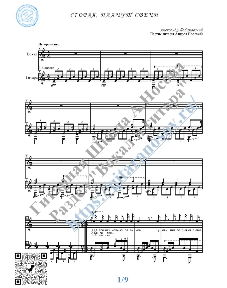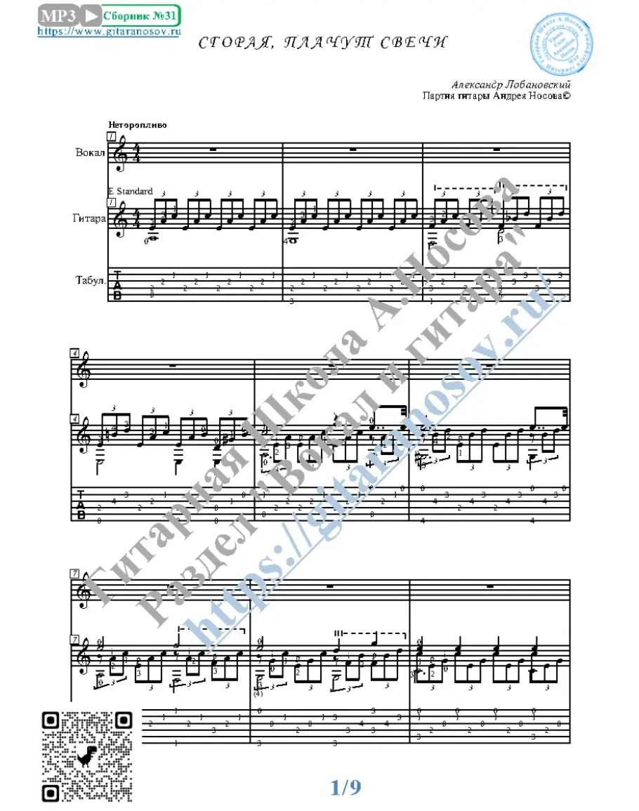 Товар состоит из двух частей (в одном PDF): 1 – Вокальная партия + гитарная партия с табулатурой; 2 – Вокальная партия + гитарная партия без табулатуры. Прилагается ссылка на прослушивание / скачивание mp3.