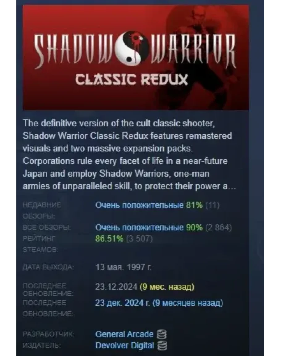 Shadow Warrior Classic Redux АВТОДОСТАВКА STEAM РОССИЯ
