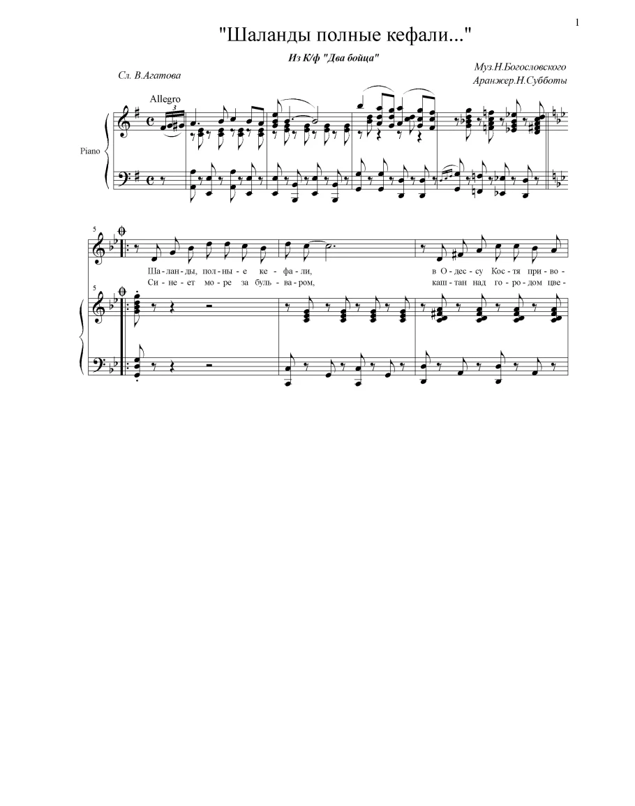 Вашему вниманию предлагается песня "Шаланды полные кефали"