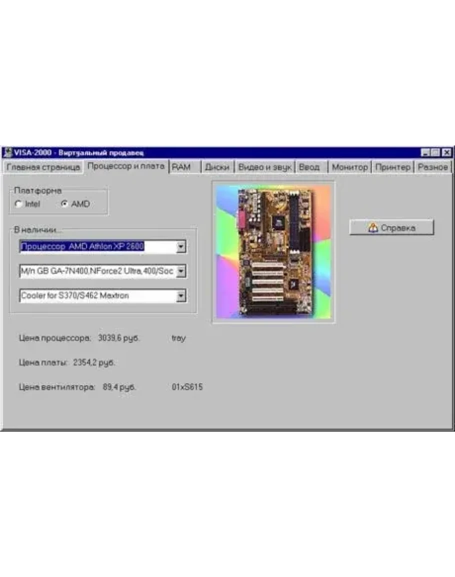 Что такое Virtual SalesMan - 2000 и для чего он нужен? Теперь, отправляясь покупать новый компьютер, можете смело выбрасывать кипу бумажных прайс-листов. VISA-2000 легко поможет Вам выбрать необходимый компьютер. Полная версия программы включает возможность редактирования баз комплектующих (с учетом отгрузки со склада), печать прайс-листов и ценников, ведение баз клиентов, а также гибкую настройку вида счета с реквизитами продавца и покупателя и будет полезна для фирм, распространяющих компьютерную технику!