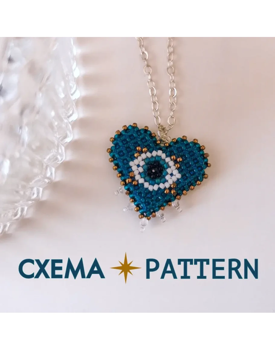 Вы получите схему "Сердце с глазом" в технике Монастырское плетение (плетение крестиком) для бисера.
