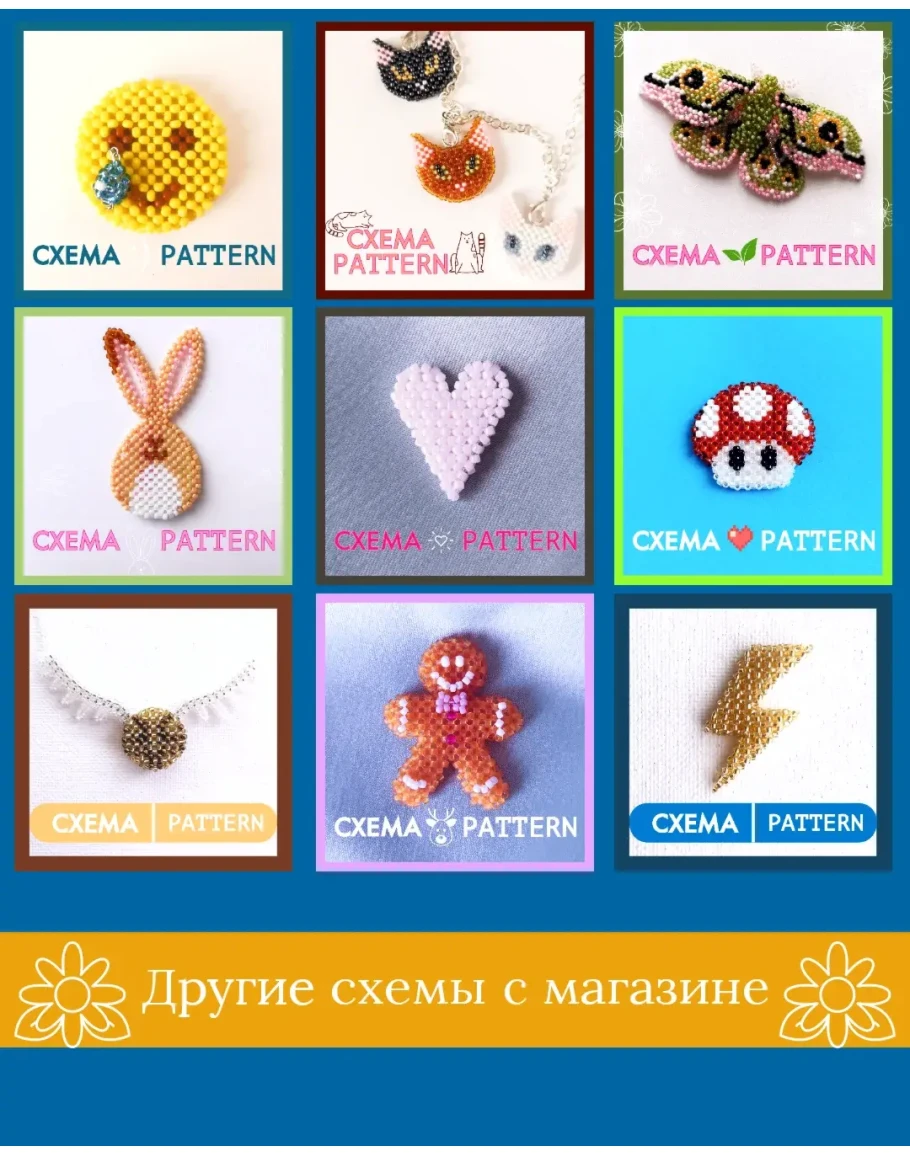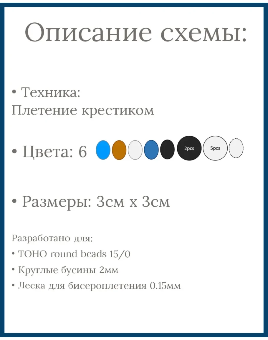 Размер изделия: 3х3см, если плести бисером размером 15/0.