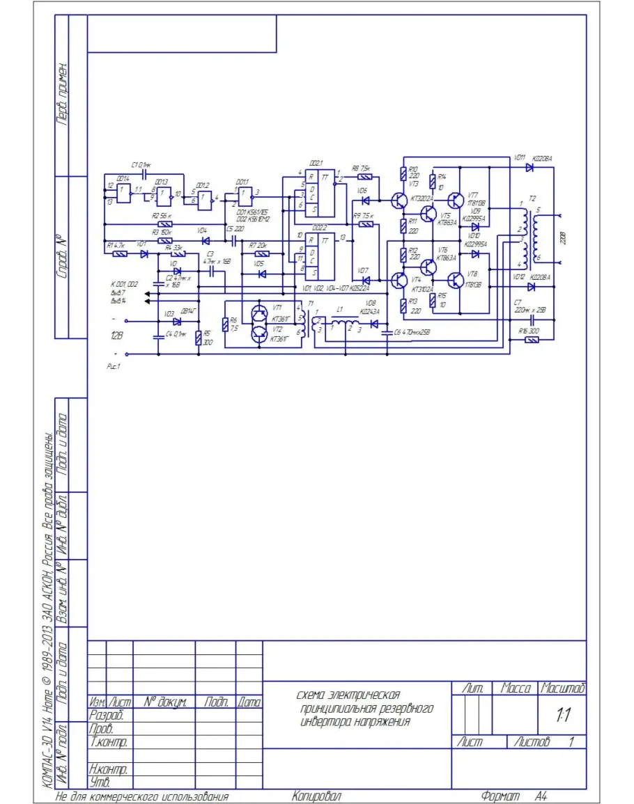 чертеж схемы электрической принципиальной резервного инвертора напряжения в компасе 14