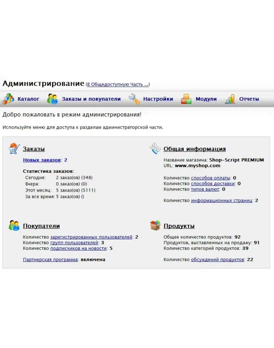 Возможность отключения виртуальной корзины и создания интернет-каталога