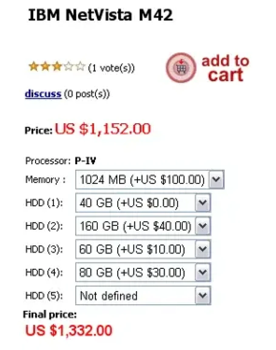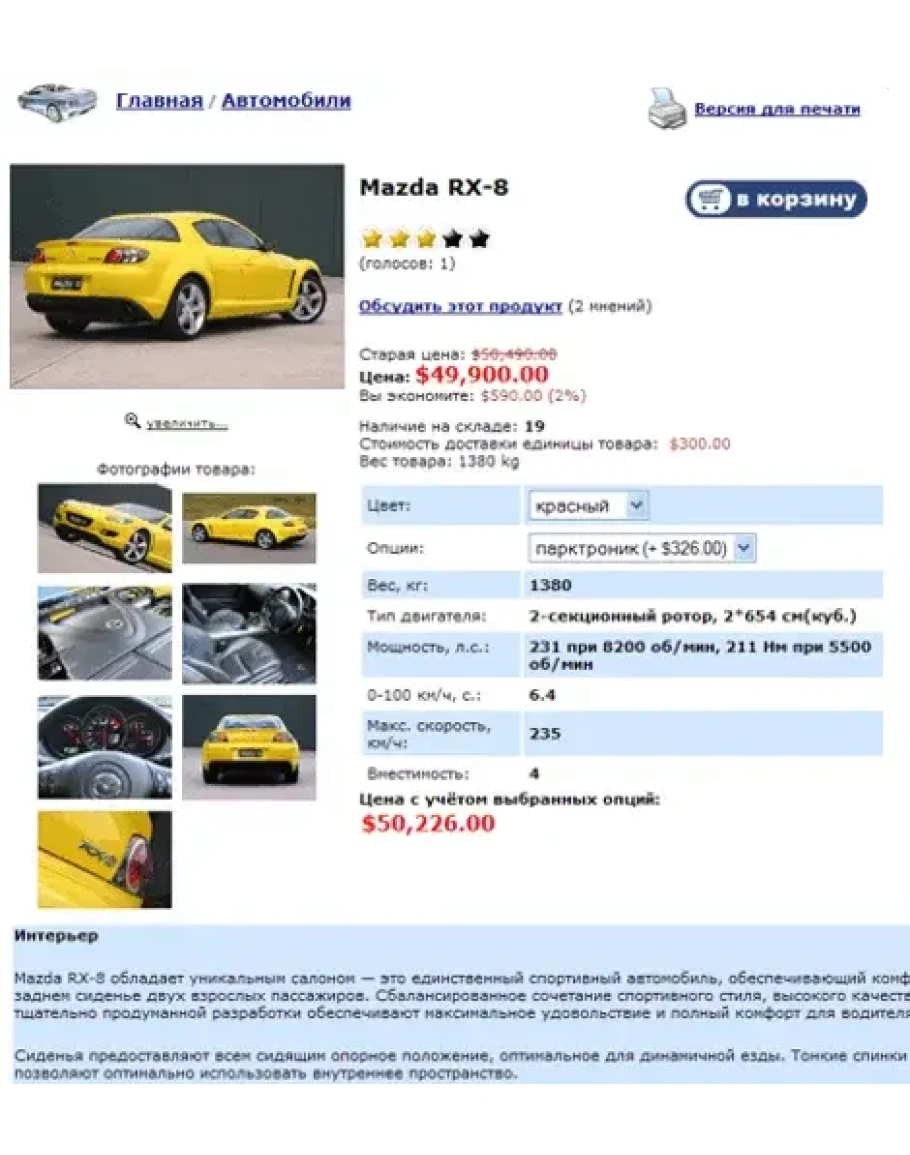 Возможность выбора конфигурации товара перед добавлением в корзину