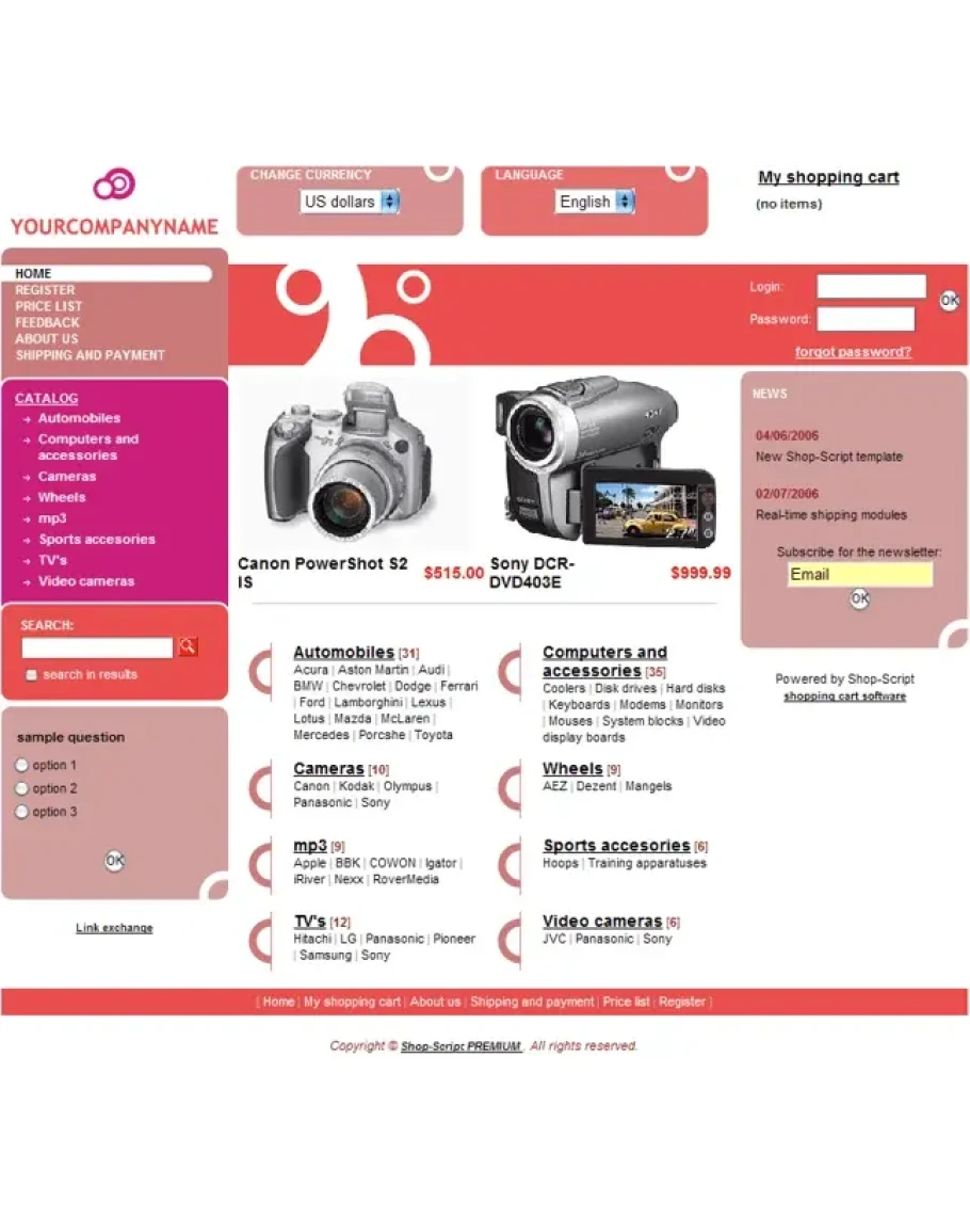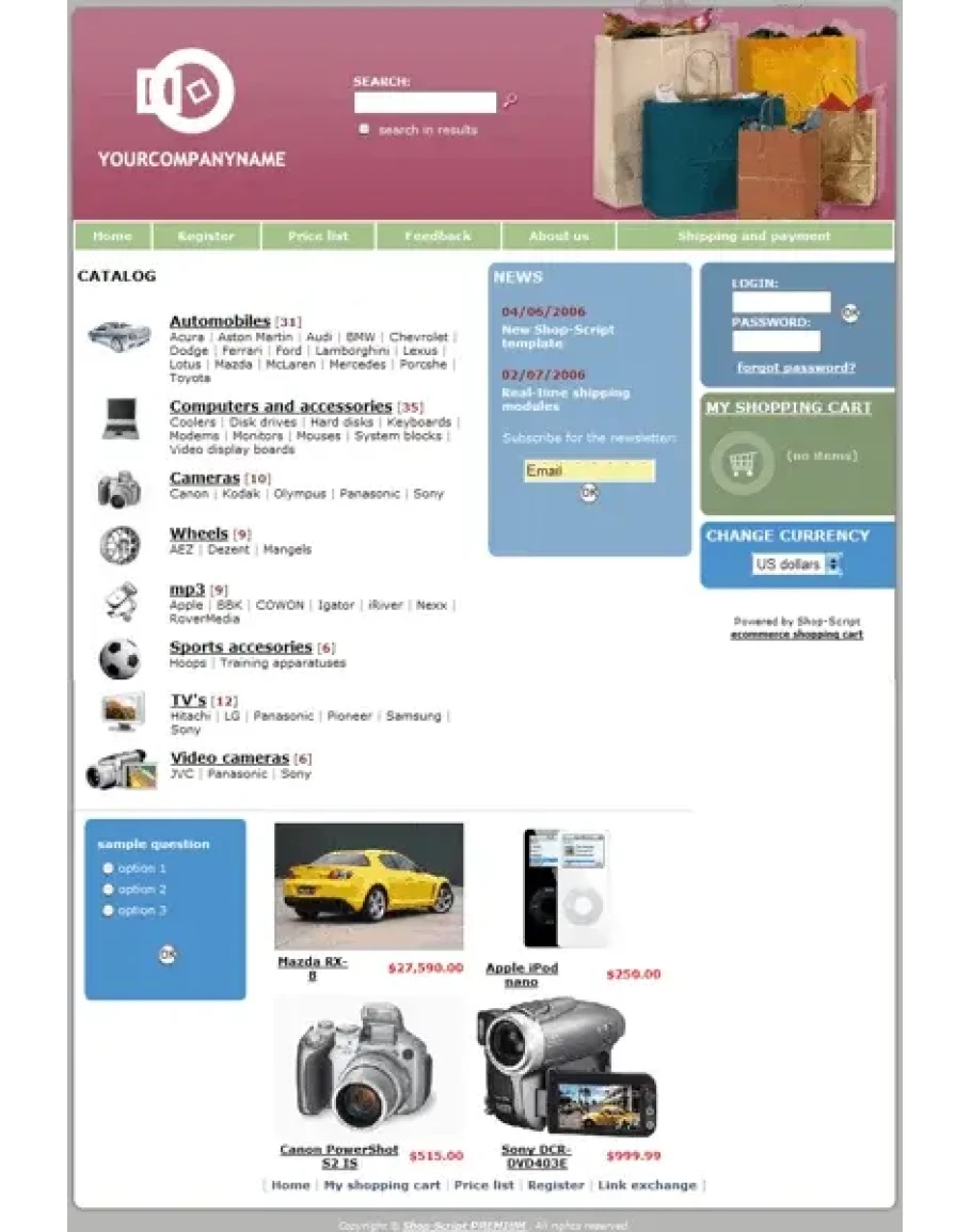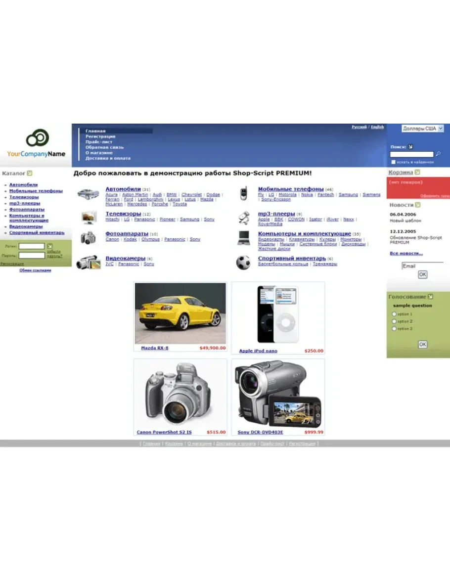 100% шаблонный дизайн (основанный на библиотеке Smarty)