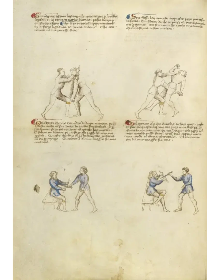 В книге подробно рассматриваются приемы безоружной борьбы, борьбы с оружием и против него, фехтование на кинжалах и длинных мечах, а так же противостояние против нескольких нападающих.