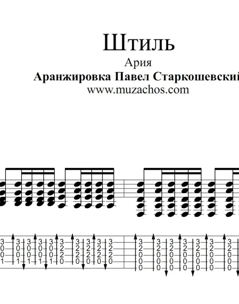 Ноты для одной гитары с аппликатурой левой руки и табулатура к переложению песни Штиль (Ария). Форматы: pdf, guitar pro 6