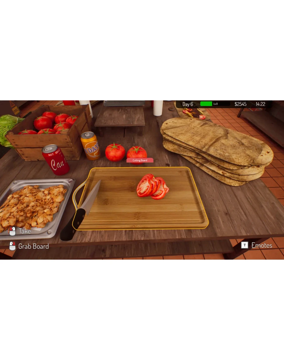 Добро пожаловать в Wrap House Simulator! Управляй своим магазином wraps, нарезай, жарь и подавай в этом кулинарном приключении. Настрои свой магазин, стань мастером гриля и выживай в наплыве заказов в одиночку или в кооперативе до 6 игроков. Успевай с заказами и строй ресторан мечты!
