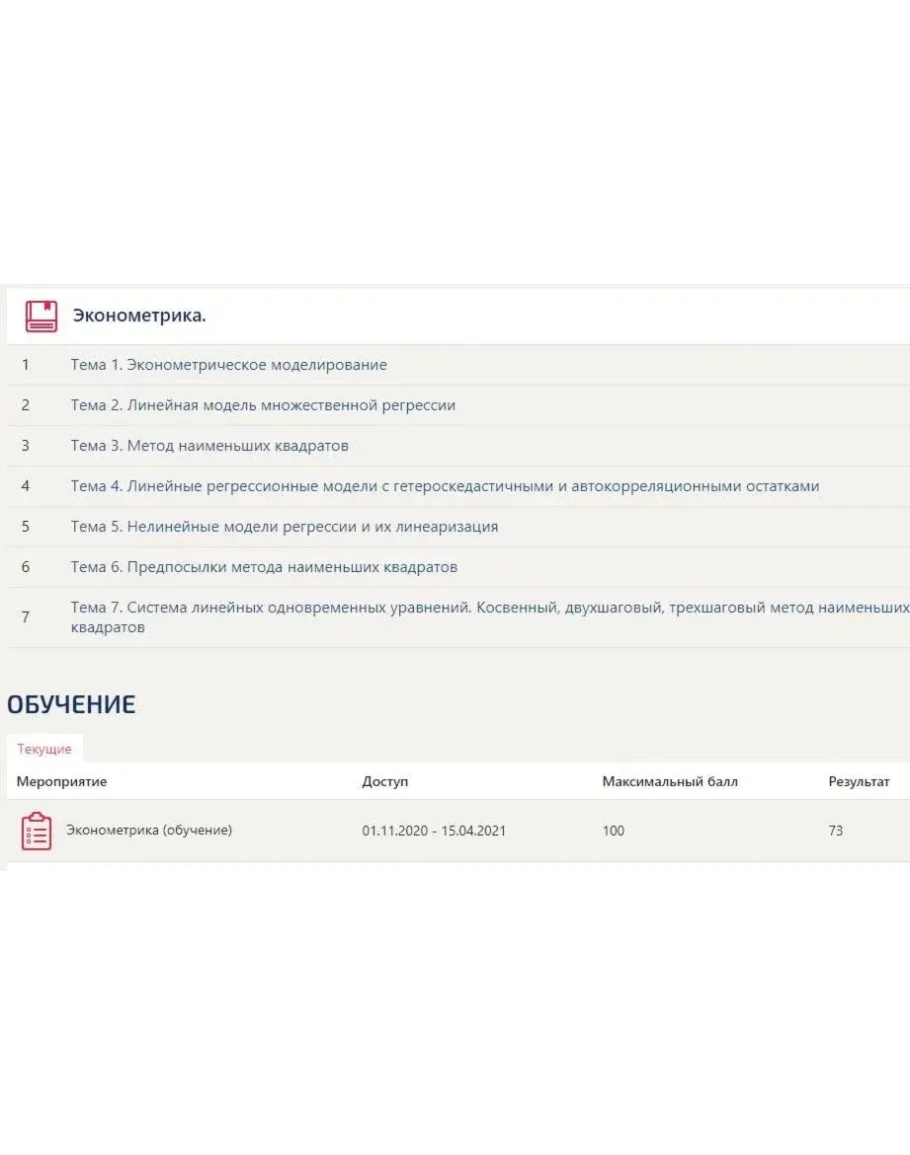 • Эконометрика Синергия Тесты (ответы на 73/100 баллов)