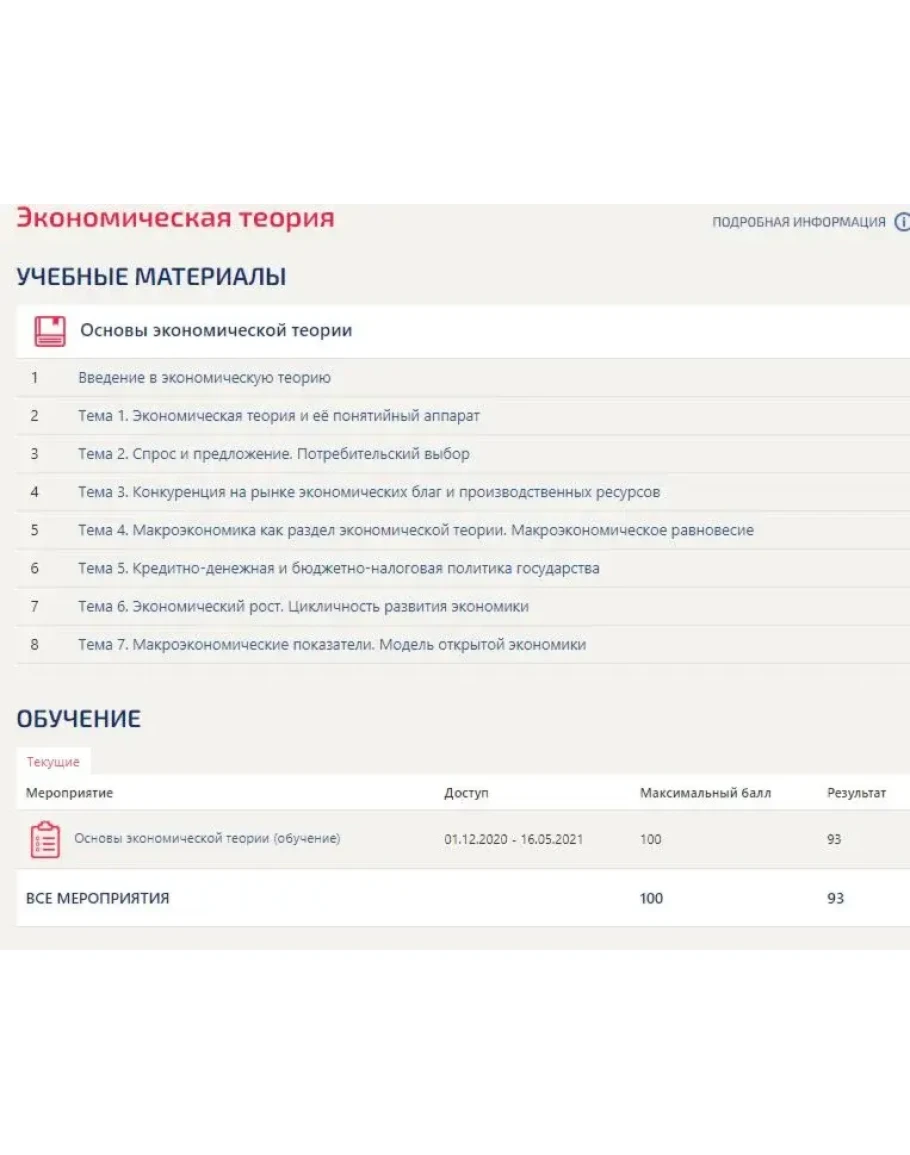 Тест с ответами по Экономической теории. Экономика Синергия МФПУ и МОИ. Результат Отлично