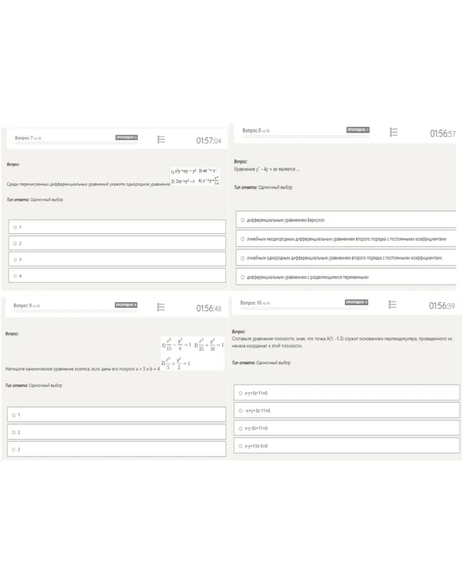 7.Среди перечисленных дифференциальных уравнений укажите однородное уравнение: формула на картинке