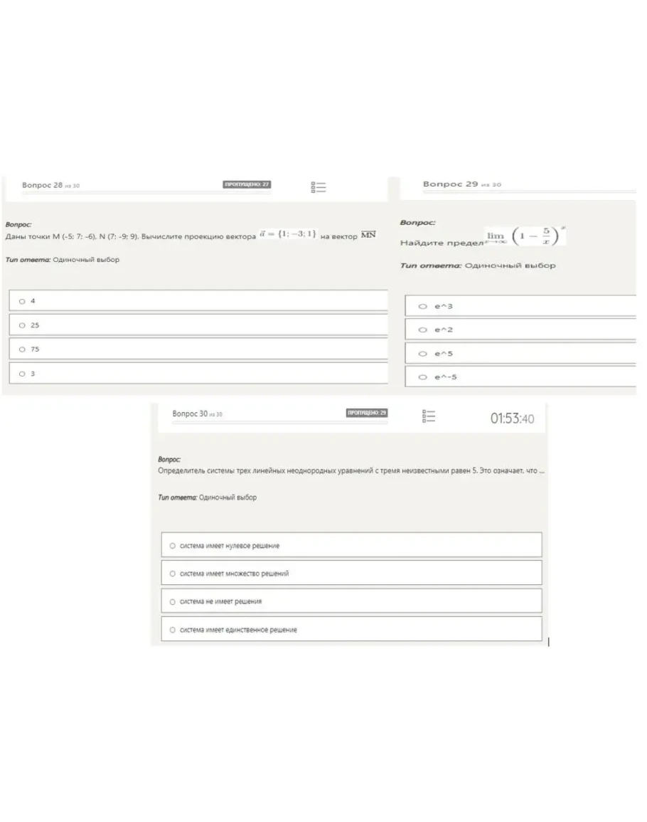 30.Определитель системы трех линейных неоднородных уравнений с тремя неизвестными равен 5. Это означает, что …