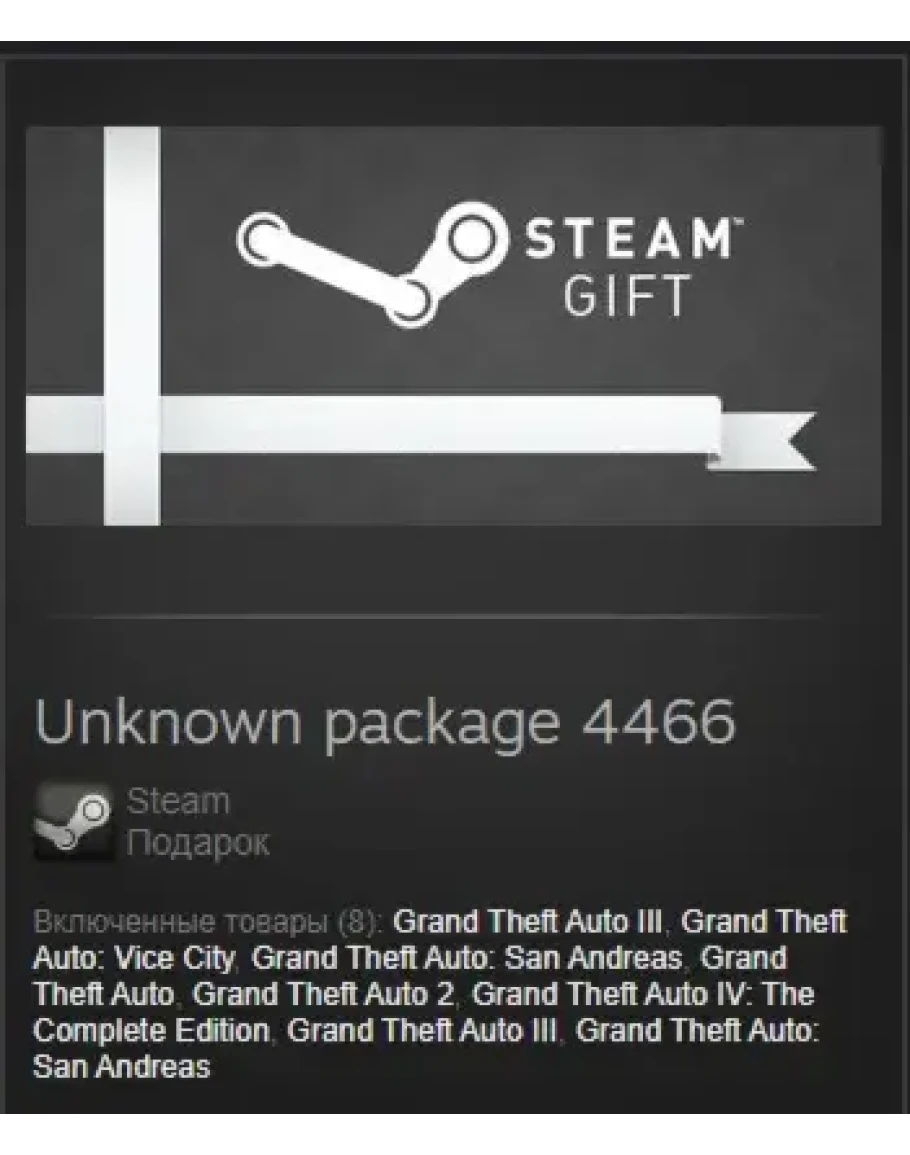 Включенные товары (8): Grand Theft Auto III, Grand Theft Auto: Vice City (Old Audio), Grand Theft Auto: San Andreas, Grand Theft Auto, Grand Theft Auto 2, Grand Theft Auto IV: The Complete Edition, Grand Theft Auto III, Grand Theft Auto: San Andreas