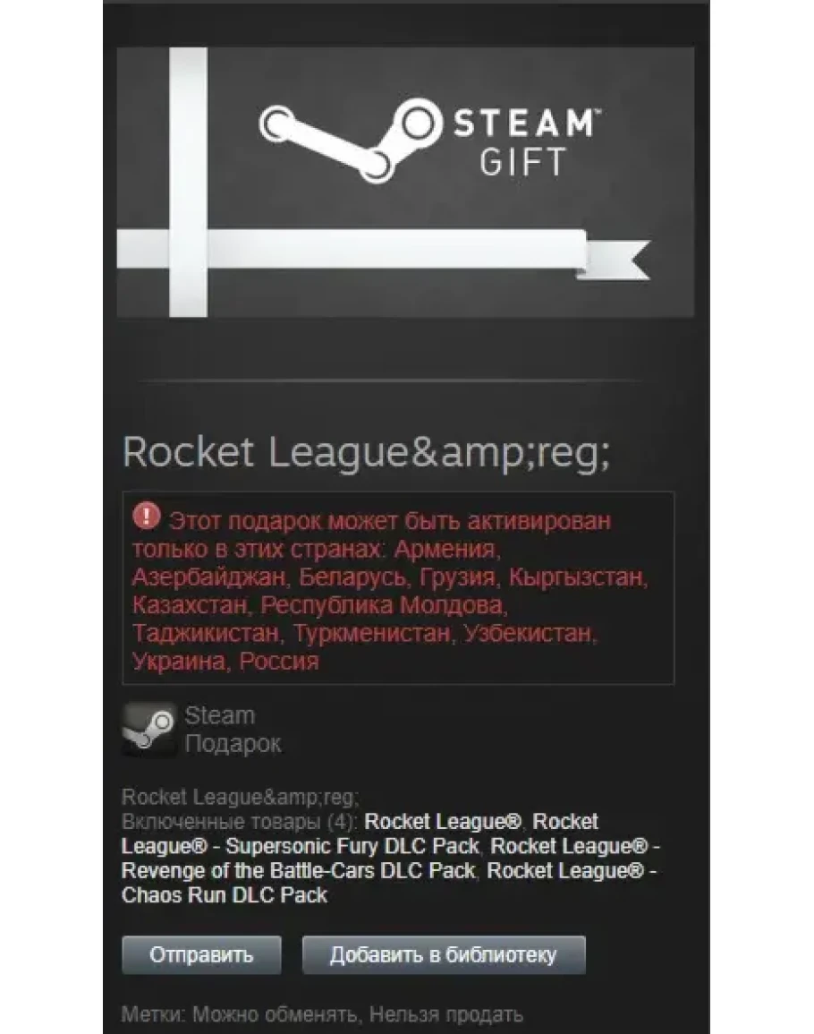 Rocket League - STEAM Gift - RU/CIS (Передаваемый)