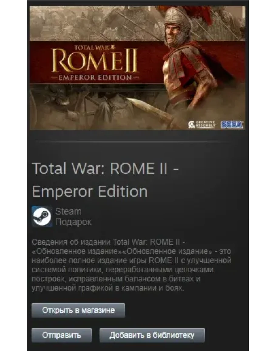 Total War: ROME II Emperor Edition — это окончательное издание ROME II, в котором реализованы улучшенная политическая система, переработанные цепочки зданий, перебалансированные сражения и улучшенная графика как в кампании, так и в битве.