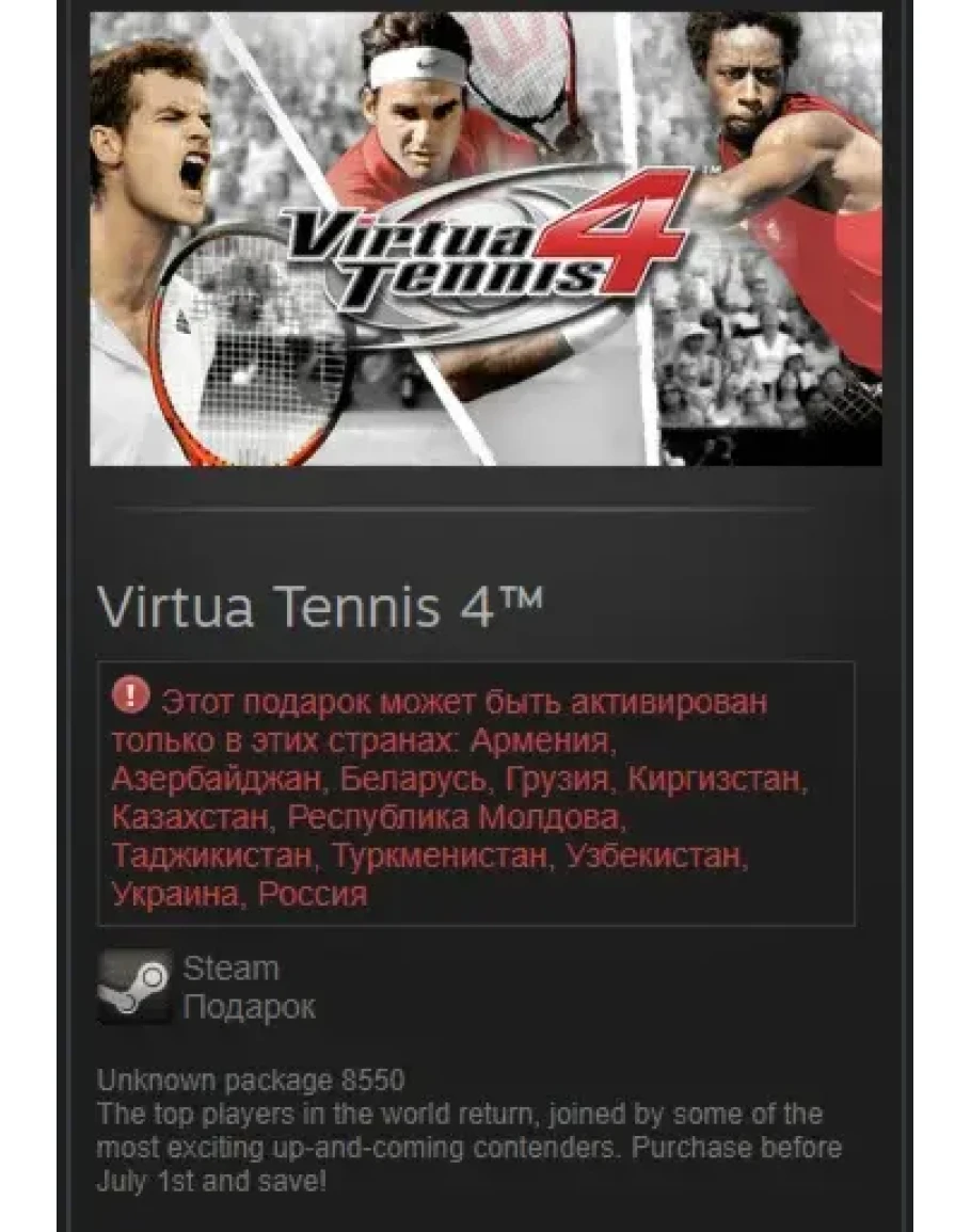 Virtua Tennis 4 Steam Gift RU/CIS в STEAM