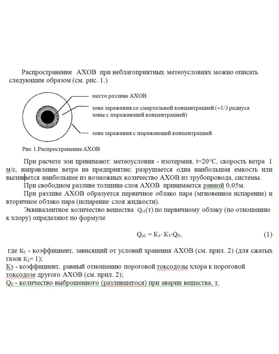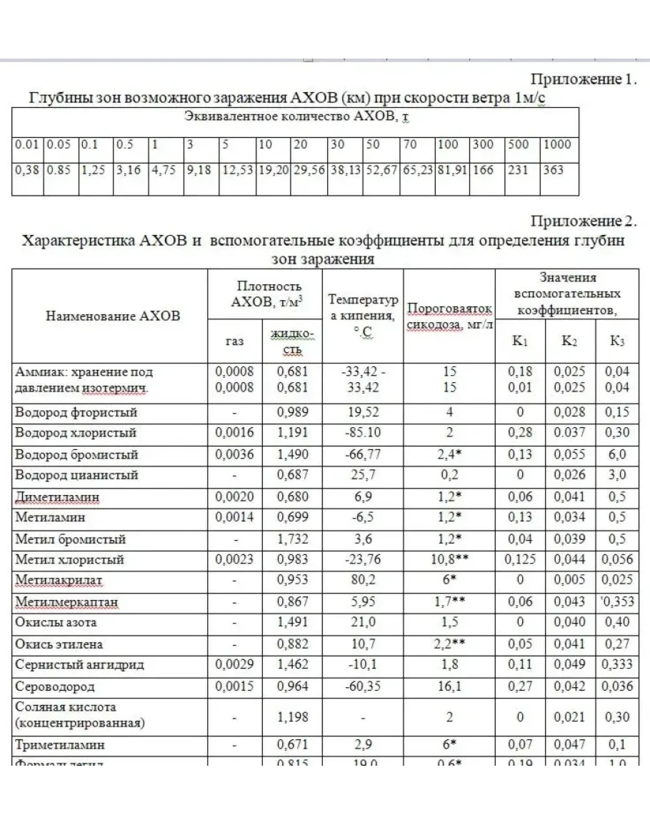 Определение глубины распространения аварийно химических опасных веществ при разливе их с поражающей концентрацией