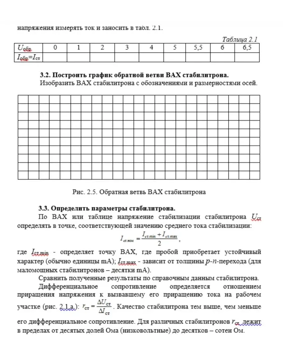 3.1. Исследовать обратную ветвь ВАХ полупроводникового стабилитрона.