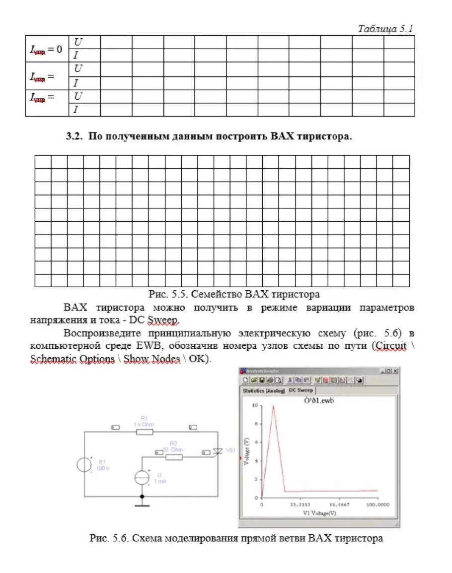 Для исследования ВАХ тиристора с помощью ЕWB необходимо: