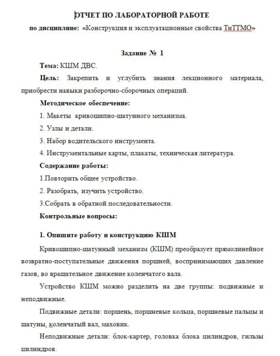 1. Опишите работу и конструкцию КШМ
