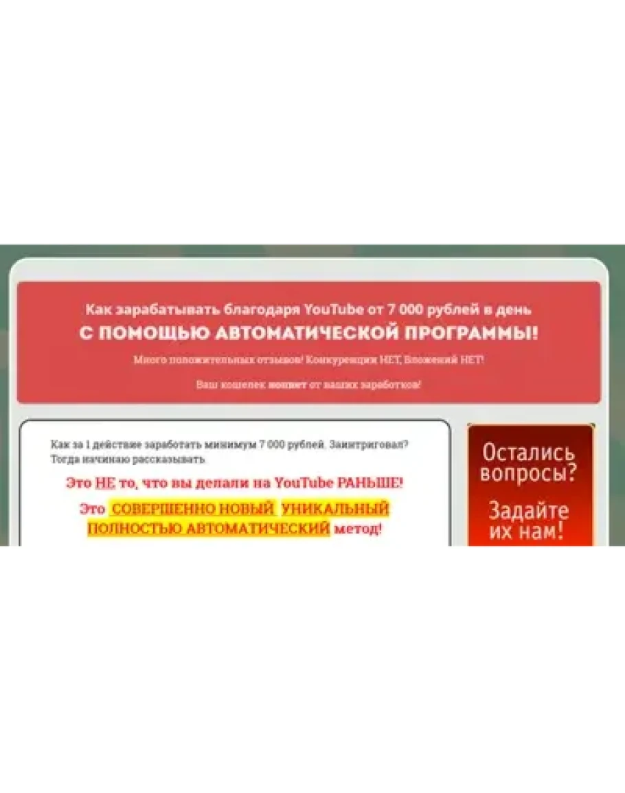 Это СОВЕРШЕННО НОВЫЙ УНИКАЛЬНЫЙ ПОЛНОСТЬЮ АВТОМАТИЧЕСКИЙ метод!