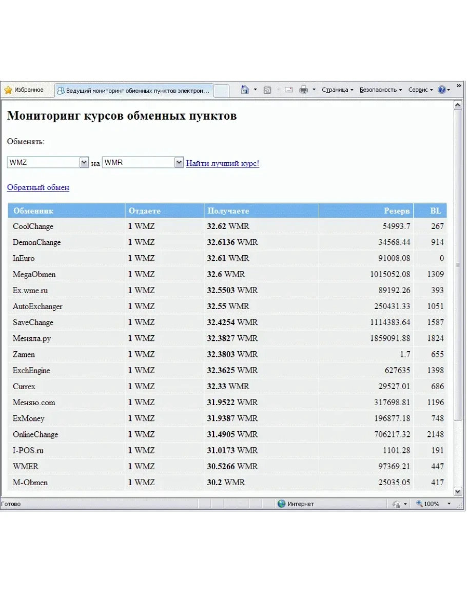 Данный скрипт написан на PHP, отображает курсы обмена автоматических обменных пунктов практически всех электронных валют.